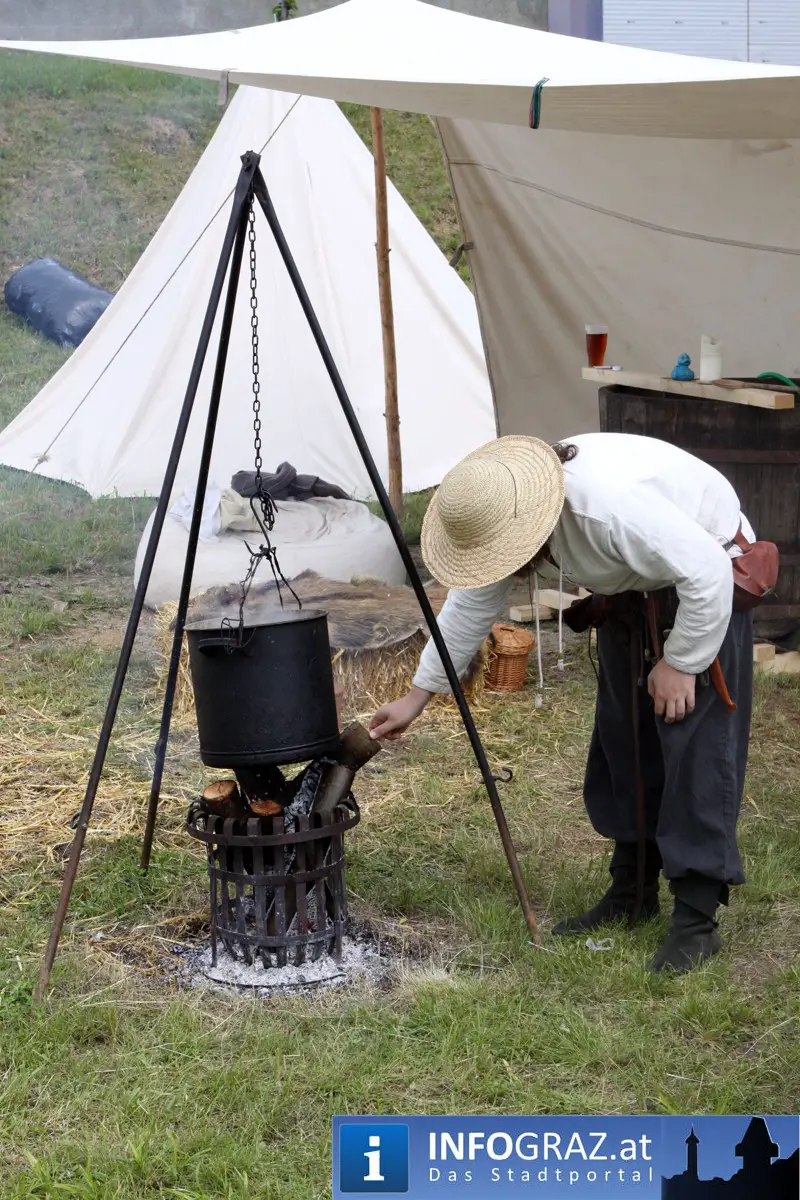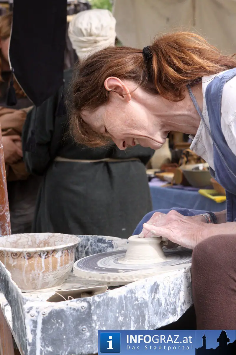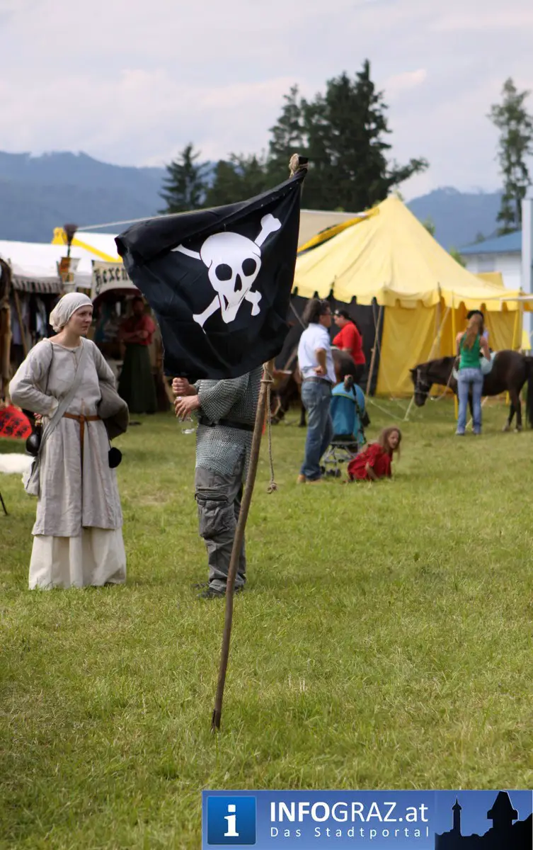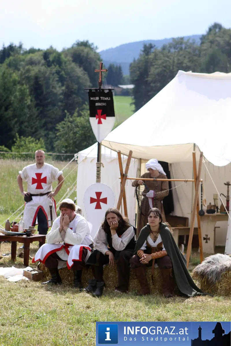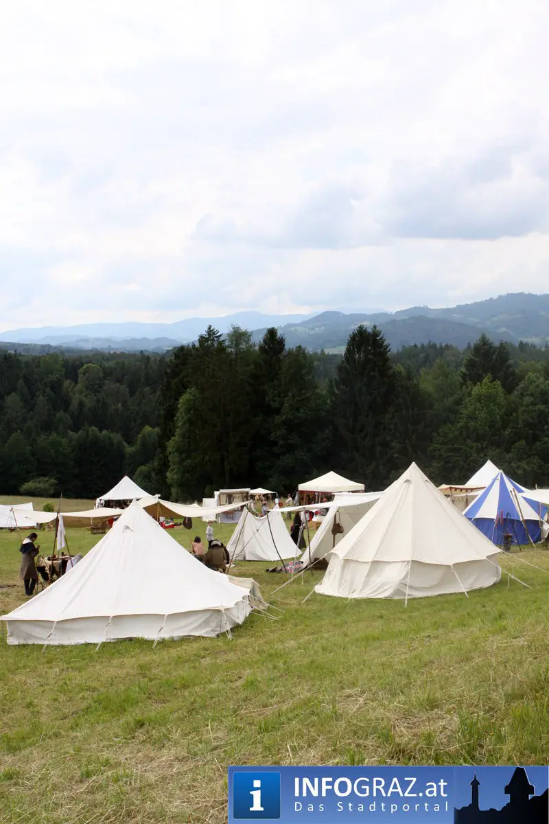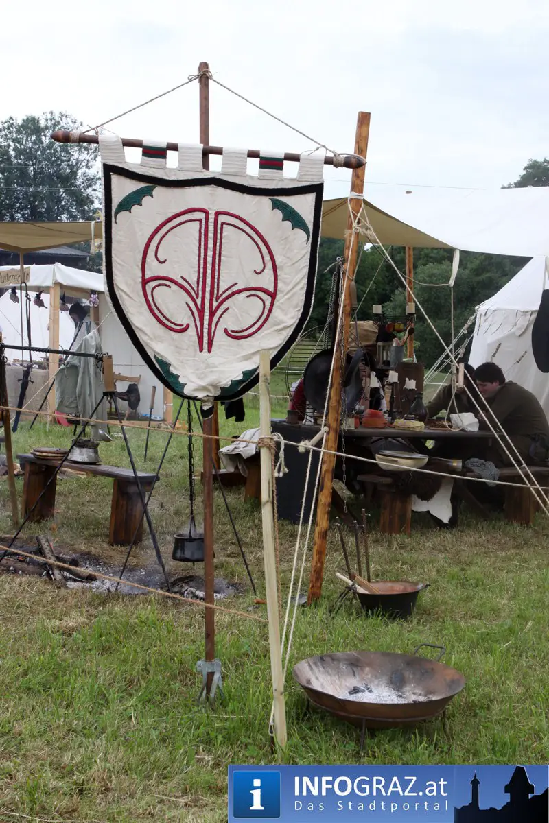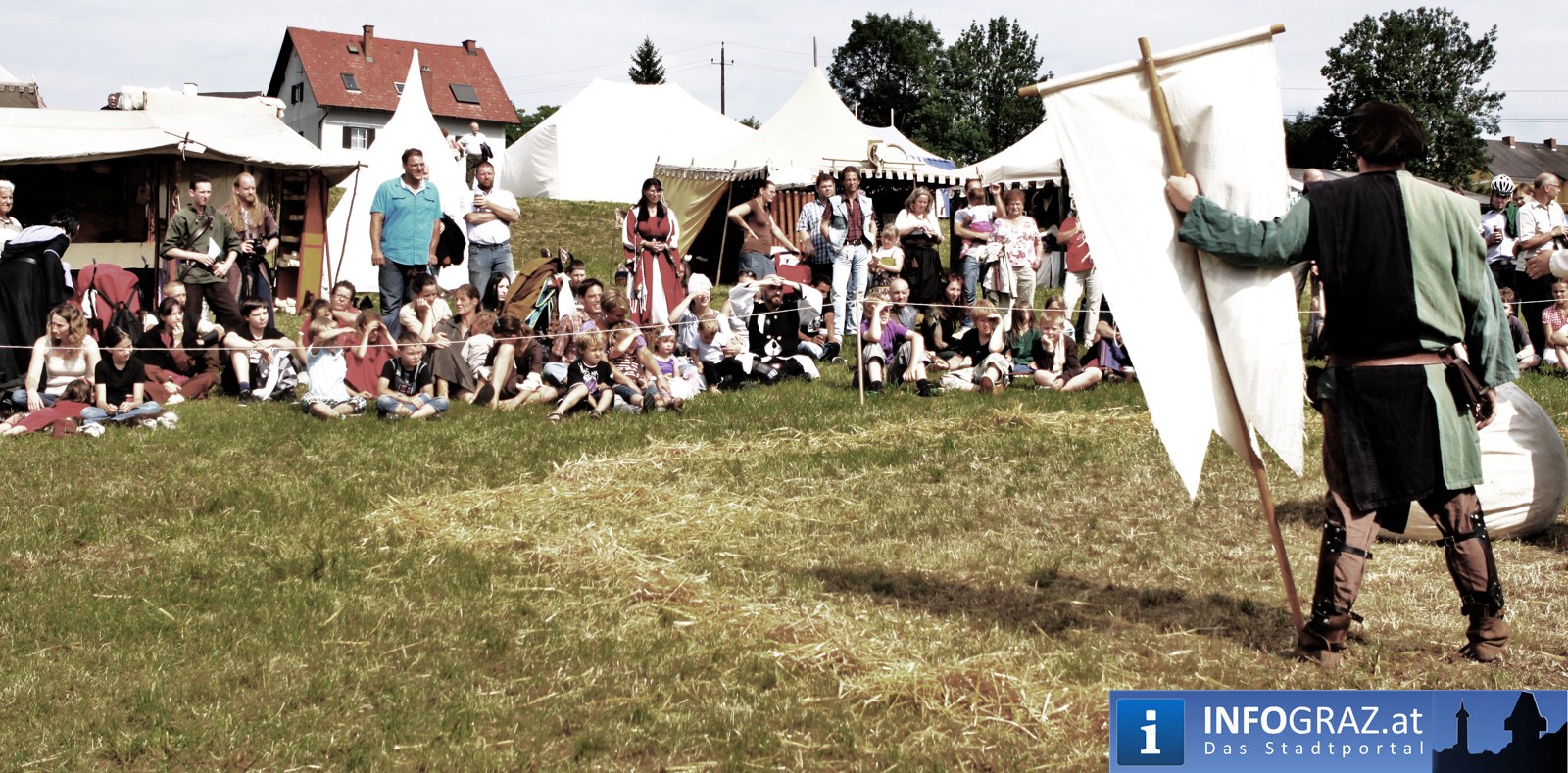 Während sich die Kinder vorbehaltlos mit dem Marionettentheater auf die Reise in eine ferne Zeit begaben, wurden die Erwachsenen mit dem herben Reiz mittelalterlicher Musik umgarnt… Eines sei schon vor Betrachten der Bilder auf INFOGRAZ.at vorweggenommen: unsere Männer von heute haben jedenfalls die vergangenen Jahrhunderte hindurch nichts an Muskelkraft und Kampfgeist eingebüßt, sei es beim Axt- und Speerwerfen, Bogen- oder Armbrustschießen oder gar beim Bruchenball-Turnier, wo mit vollem Körpereinsatz bis zum Umfallen gekämpft wurde!