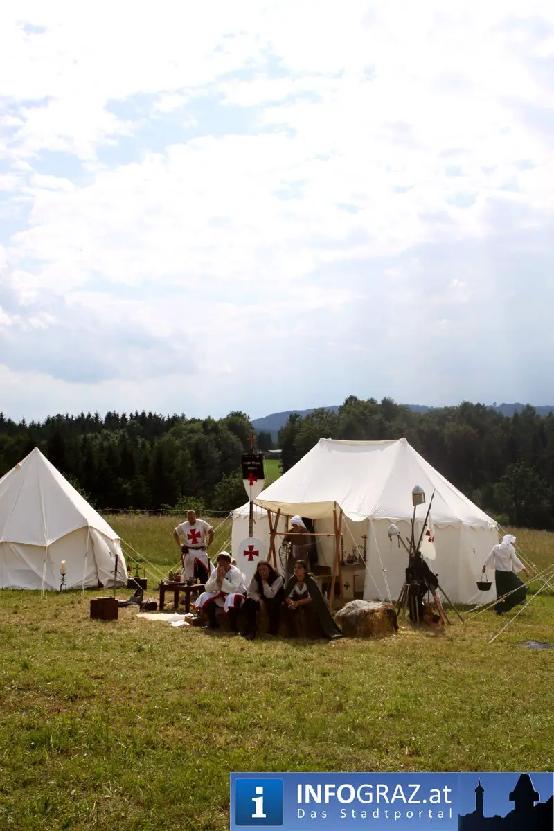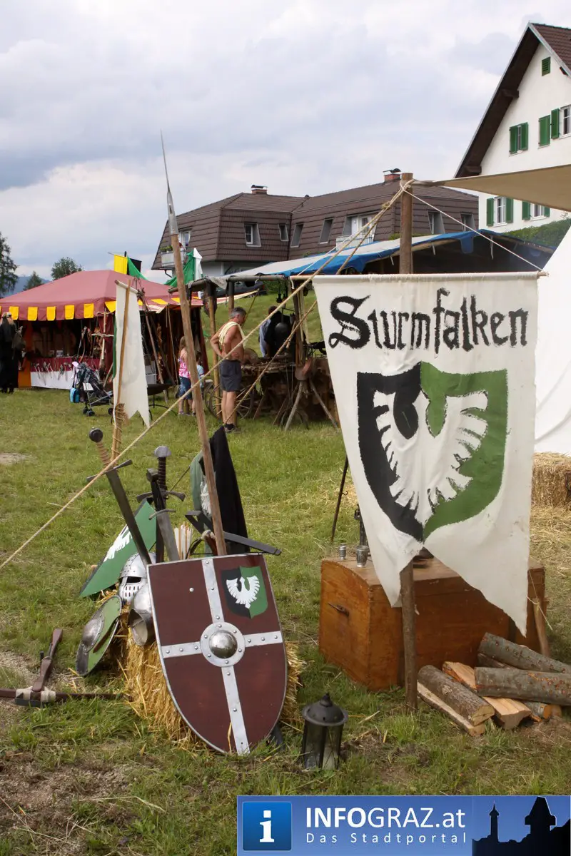 Das Mittelalter – nahezu 1.000 Jahre europäische Geschichte – feierte in St. Oswald seine Auferstehung in Form eines drei Tage währenden Mittelalterfestes mit Ritterlager, Schaukämpfen, Waffenerklärung, Handwerk, Markt und manche andere Gaukelei.
