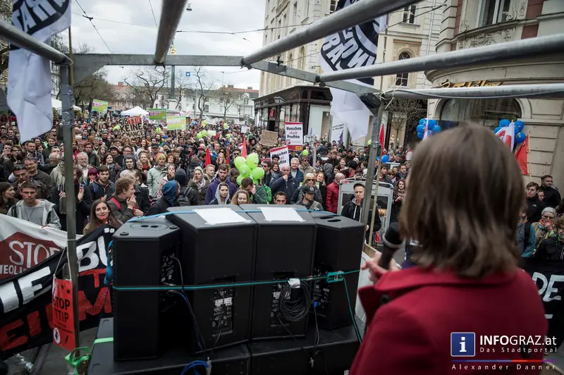 Mit Infoständen und Redebeiträgen während der Kundgebung waren aber auch Vertreterinnen und Vertreter der Grünen, der KPÖ, der Piratenpartei und der SPÖ beteiligt.