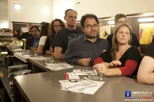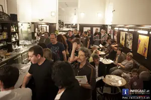 Künstlergruppe verhackART Vernissage der Ausstellung UNART Das Thema dieser Ausstellung wurde auf neunfache Weise interpretiert, wobei sowohl auf die Unartigkeit in unterschiedlichen Härtegraden, wie auf die Un/Kunst Bezug genommen wurde. Die -Nicht der Art entsprechende-, von der gesellschaftlichen Norm abweichende unartige Auslegung findet sich als positive, von Zwängen und Manipulation befreite Form und Aufruf zum eigenständigen Denken und Handeln wieder. In der negativen Auslegung finden sich Gedanken von gesellschaftlich provozierter Versagensangst, sozialem Abstieg und der Tabuisierung von Armut in Zeiten des Überflusses, in einer Konsumgesellschaft, die wachsende Armut nicht sehen will. Das System, als Produzent von Machtgier und Egoismus, das die Menschen veranlasst unverhohlen die Ressourcen dieser Welt zu plündern, die Natur zu zerstören und ohne Rücksicht auf Verluste über die Schwächeren hinwegzuschreiten. In der extremsten Auslegung von Un/art gipfeln die Werke in visuellen Auseinandersetzungen mit Gewalt und Zerstörung, Hass, Schmerz und Tod. Der Gewalt, die Menschen sich selbst, untereinander und anderen Lebewesen tagtäglich zufügen, in der die Opfer von zwischenmenschlicher Gewalt und Alkoholmissbrauchs in Vereinsamung, lähmender Verzweiflung und Depression versinken. Der Vandalismus wiederum fungiert als Symbol viel größerer Zerstörungswut, Aggression und Destruktivität wie sie sich in endlosen Variationen weltweit wiederfinden. Die Un/Kunst schließlich findet Ihren Ausdruck in ganz gezielter Künstlichkeit, in Anspielungen auf Fälschungen, Plagiate und das.. ..unverschämte Kopieren und Aneignen fremder Kreativität. Die Aneignung unterschiedlicher Kunstrichtungen zu einem neuen Ganzen, das Zusammenstehlen visueller Information als Ausbeutung fremder Originalität. Diese Ausstellung ist ein Plädoyer an die Menschlichkeit, Toleranz, Ehrlichkeit und nicht zuletzt an gute Manieren! Eröffnung der Ausstellung: HR Dr. Joachim Gruber Direktor des Bildungshauses Schloss Retzhof Musikalische Begleitung: Anton Pyvovarov Plakat und Flyer designed by Andrea Copony model: Julian Copony Teilnehmer und Teilnehmerinnen: Die Ausstellung ist zu besichtigen bis 15. November 2014 © Stadt Graz Copyright-Regeln & Tipps für den optimalen Download bei INFOGRAZ.at erklären wir Ihnen hier! Wenn Sie alle Bilder der Vernissage der Ausstellung UNARTim Café Kaiserfeld am 19. September 2014 über DropBox oder FTP wollen - Mail an die Redaktion (und vorher die Copyright-Regeln gründlich lesen). Bei entsprechender Begründung können Sie die Bilder auch ohne unser Logo erhalten – natürlich gelten die ©-Regeln dennoch! |