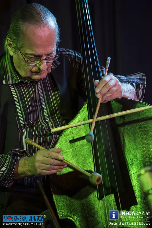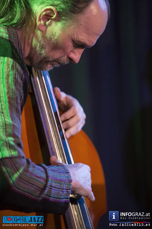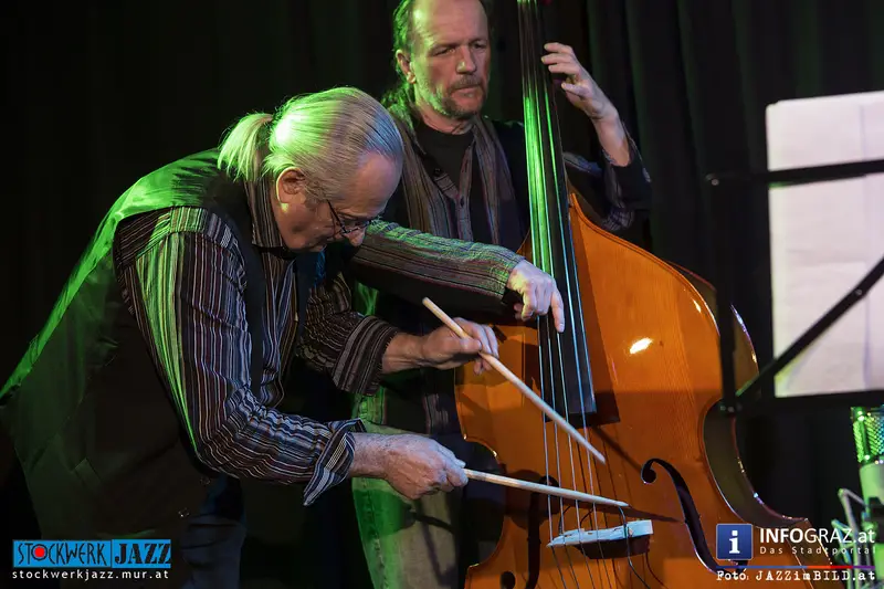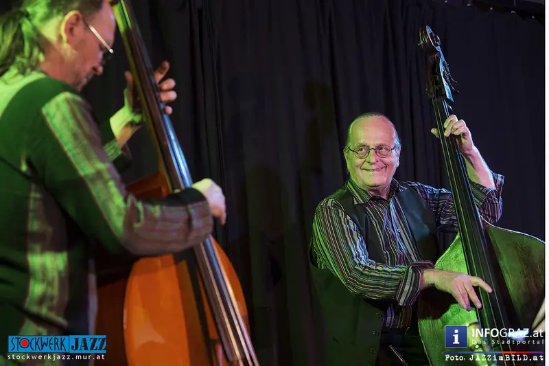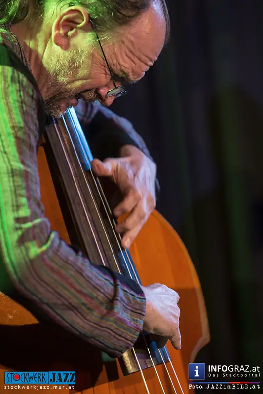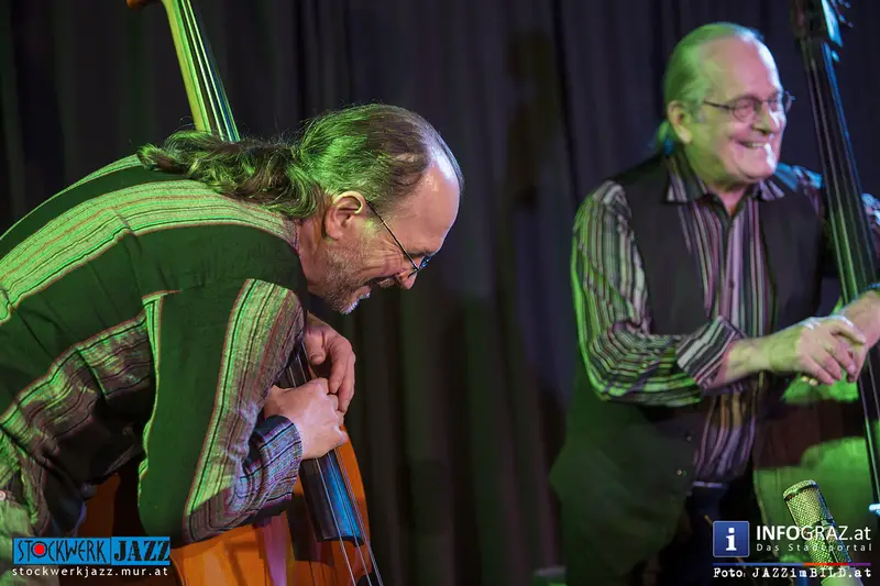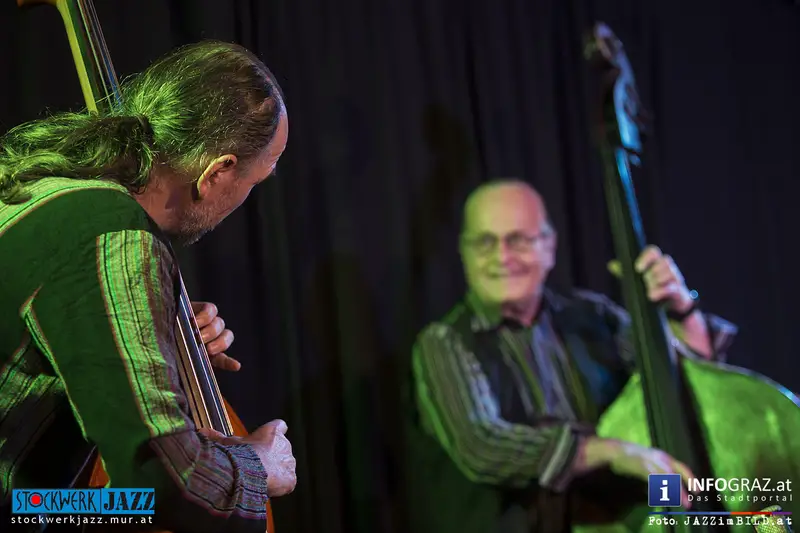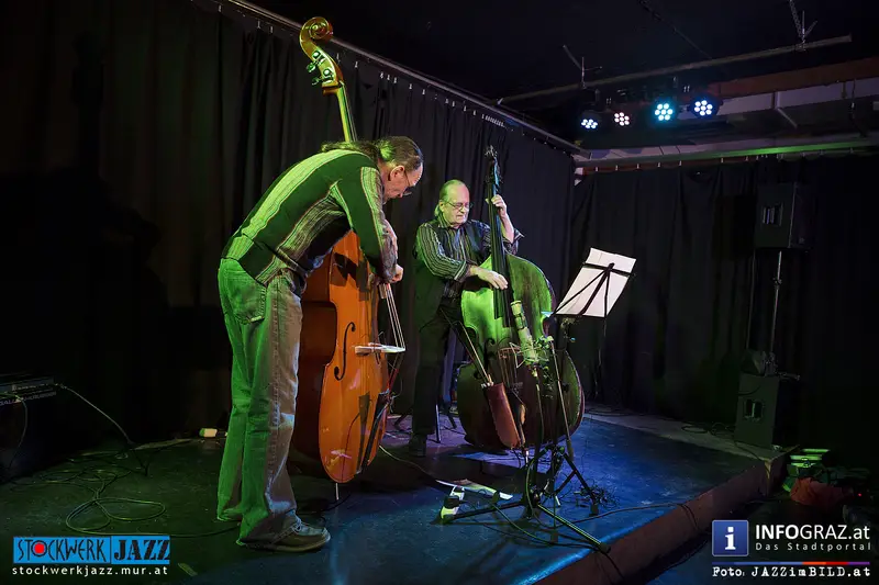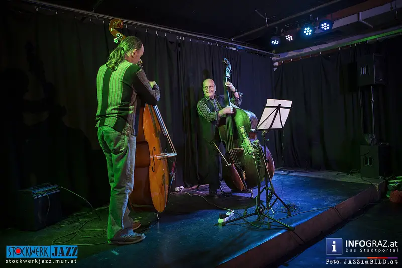 Grandseigneur und Tausendsassa Oberleitner trifft Blitzkerl und Dunkelbunt Ziegerhofer - zwei Generationen Kontrabass, eine Idee: die jazzmusikalische Konversation aus dem Geiste der Freiheit. Ersterer zwischen New Orleans und Free Jazz zu Hause, Letzterer zwischen Folk, Ethno und ebenfalls Free Jazz zugange. Gemeinsamer Nenner: große Ohren und der Wille zur Interaktion. Alles ist möglich, denn alle Ausrüstung ist vorhanden.