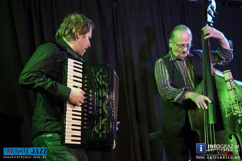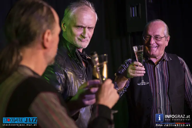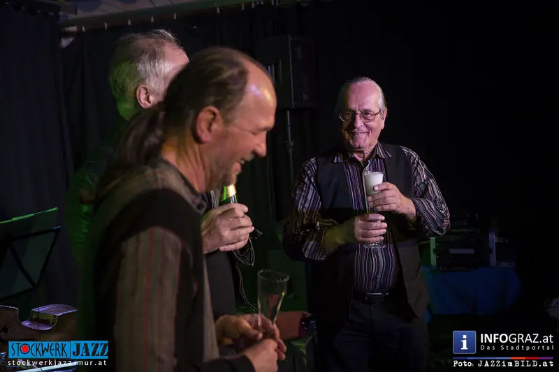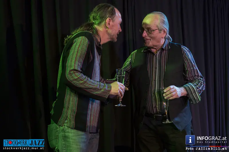 Ewald Oberleitner feierte seinen 77. Geburtstag mit einem grandiosen Konzert, er und Reinhard Ziegerhofer zogen alle Register, hielten den Bogen immer gespannt und hielten permanent die Spannung hoch. Den Schlusspunkt setzte er mit dem slowenischen Accordionisten Jure Tori, mit dem er gemeinsam im Trio spielt.