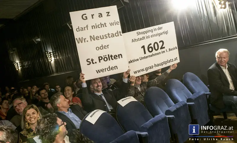 Im Anschluß an die Filmvorführung lud Didi Hubmann ( Kleine Zeitung ) als Moderator zu einer Diskussionsrunde über die Zukunft der Shoppingcenter und ihre gesellschaftlichen Auswirkungen.