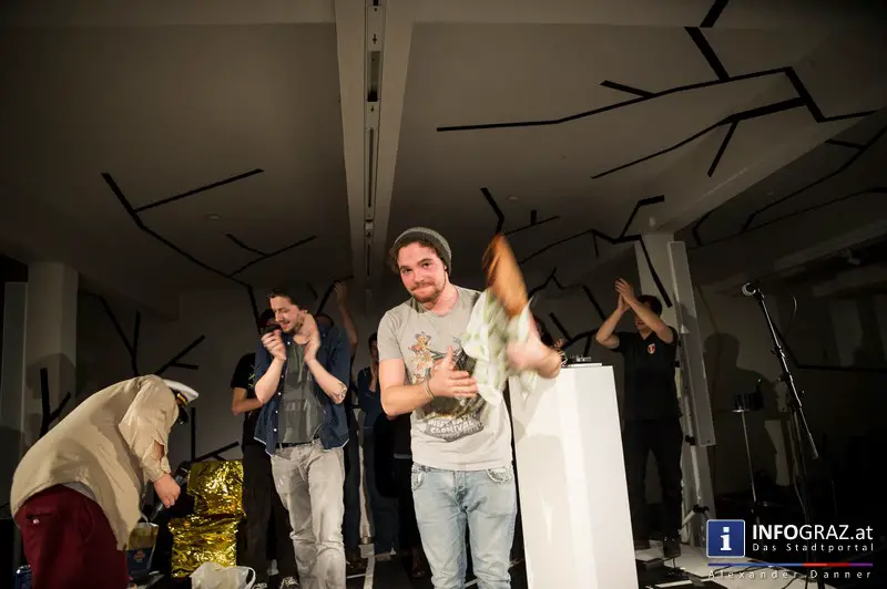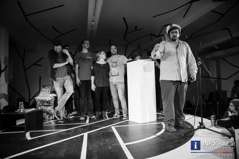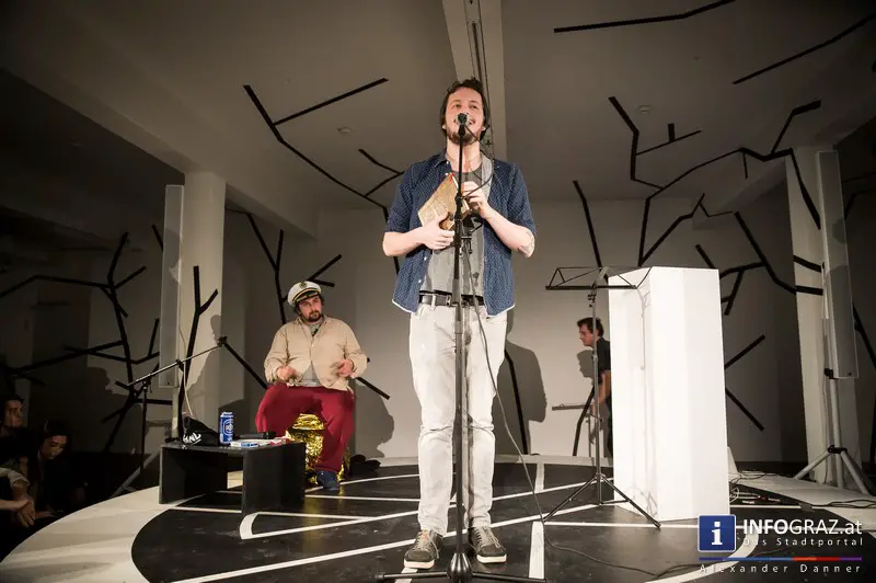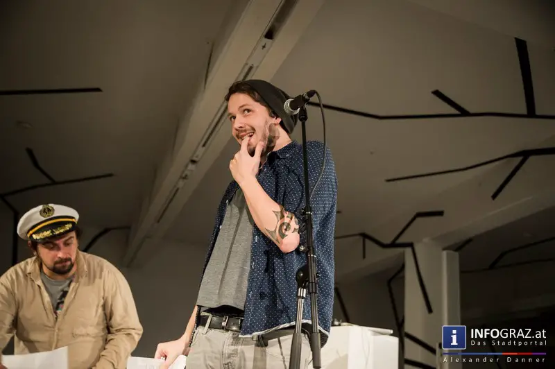 poetry slam,kombüse,kombüsenslam,künstlerhaus,lyrik-format,selbst geschriebene texte,musik,kostüme,requisiten,bestplatzierteIn die Ränge der vier bestplatzierten katapultierte die Gunst des begeisterten Publikums die Poetinnen und Poeten Henrik Szanto, Janea und Florian Supé.