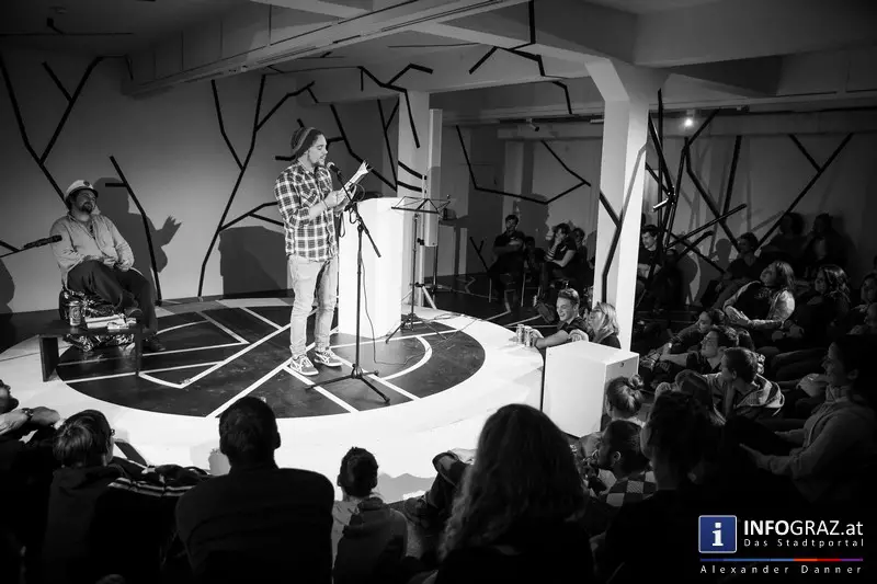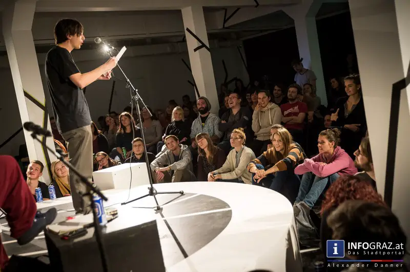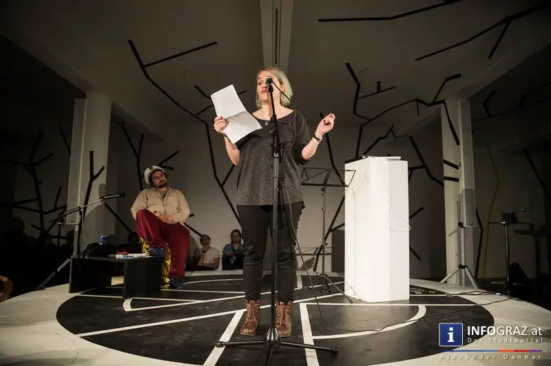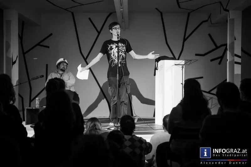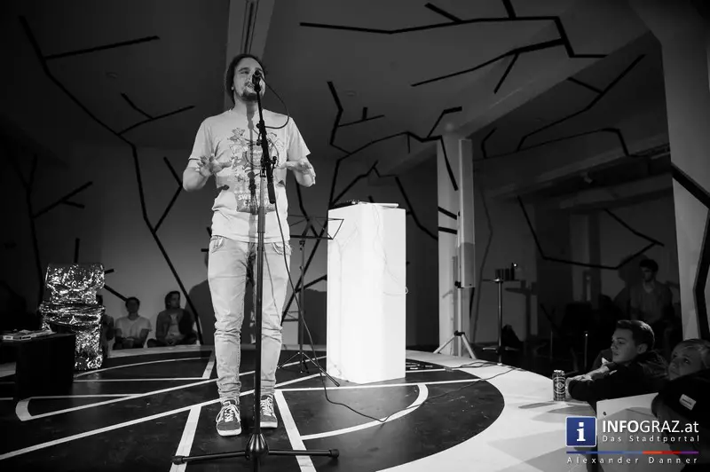 Wie auch sonst für das Lyrik-Format üblich, galt es selbst geschriebene Texte auf die Bühne zu bringen - unwichtig ob abgelesen oder frei vorgetragen, keinesfalls aber durch Hilfsmittel wie Musik, Kostüme oder sonstige Requisiten.