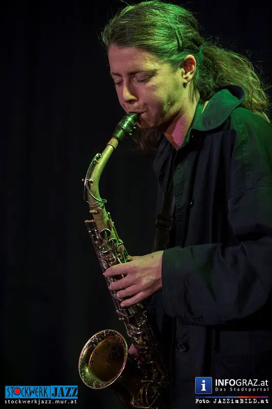 Tanja Feichtmair (alto sax)In bester US-Free Jazz-Tradition mit so manchem Gefühlsüberschwang, aber auch mit dem kontrolliertem Puls und der Klangästhetik der improvisierten Musik europäischer Provenienz geht das Trio rund um die virtuos vorwärtsdrängende Altsaxophonistin Tanja Feichtmair beharrlich einen Weg, der kein bequemer ist.