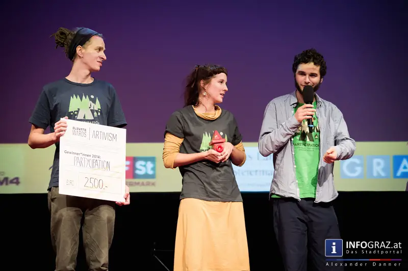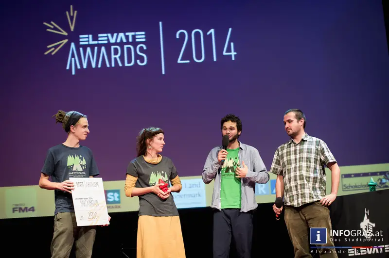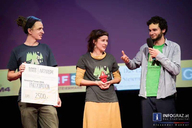 Ausgezeichnet mit dem Elevate Artivism Award wurde: Partycipation, ein soziales Projekt, das eingebettet in einem viertägigen Festival in Niederösterreich neben Musik und Kabarett eine Vielzahl an Workshops - darunter zu Themen wie Politisches Theater, Upcycling, Politischer Aktionismus oder Selbstversorgung - bietet und dabei in erster Linie von ehrenamtlich arbeitenden und idealistischen Mitarbeitern und Mitarbeiterinnen getragen wird.