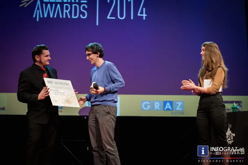 Der International Elevate Award wurde verliehen an: Nadim Kobeiss, Programmierer und Gründer von Cryptocat, einem Browserplugin, das auch unerfahrenen Usern verschlüsselte, gleichzeitig jedoch unkomplizierte Kommunikation ermöglicht.