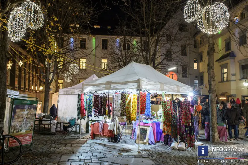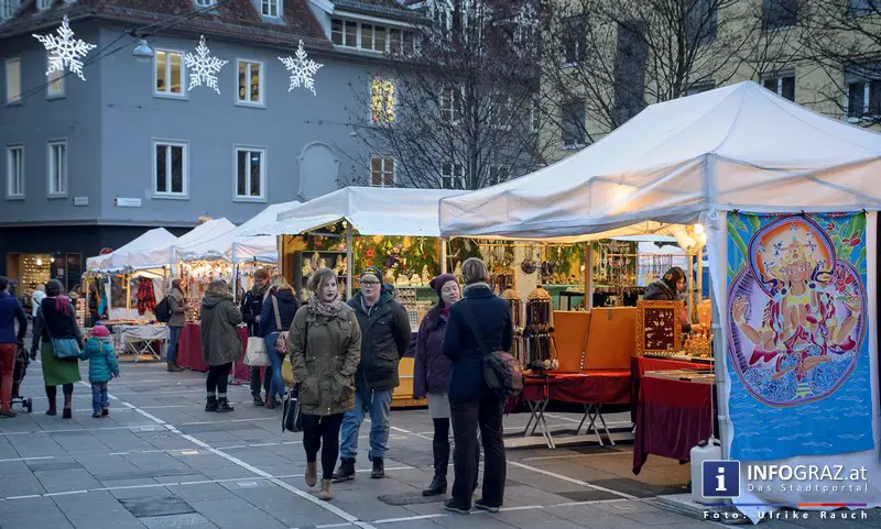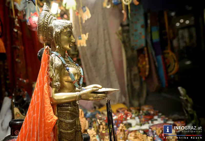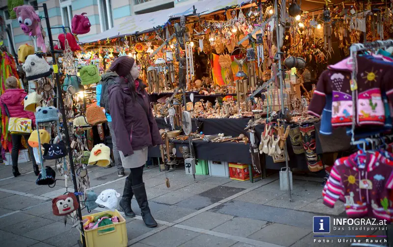 traditionelles brauchtum,verweilen,design-adventhütten,mehlplatz,erlesenes kunsthandwerk,adventmärkte graz,christkindlmärkteGanz im Gegensatz dazu treffen sich am Tummelplatz Lebenskünstler, Weltenbummler und Kunsthandwerker aus verschiedenen Nationen, um ihr farbenprächtiges Sortiment anzubieten. Eine bunte Vielfalt an Kunsthandwerk aus fernen Ländern, Weihrauch, Myrrhe und Räucherstäbchen für besinnliche Stunden, Wolltextilien aus Südamerika und so manchen Kuriositäten.
