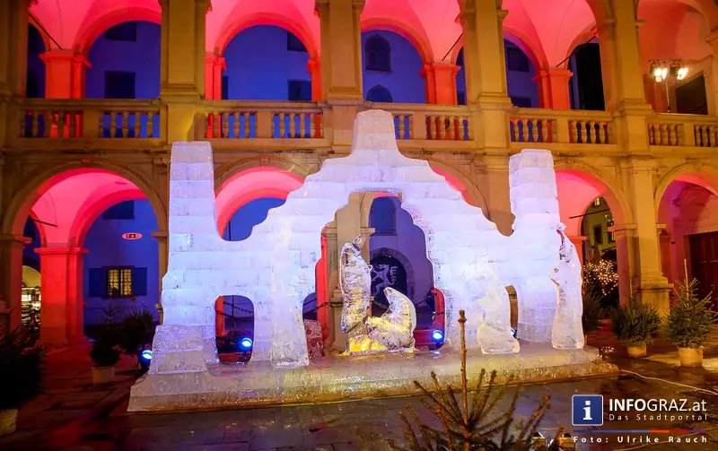Das herrschende Wetter lädt ein zu einem letzten Bummel durch die Märkte, allein die Eiskrippe im Landhaushof würde sich über tiefere Temperaturen freuen.