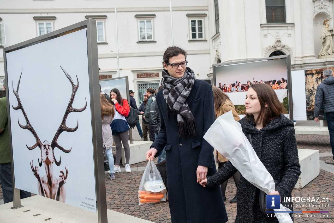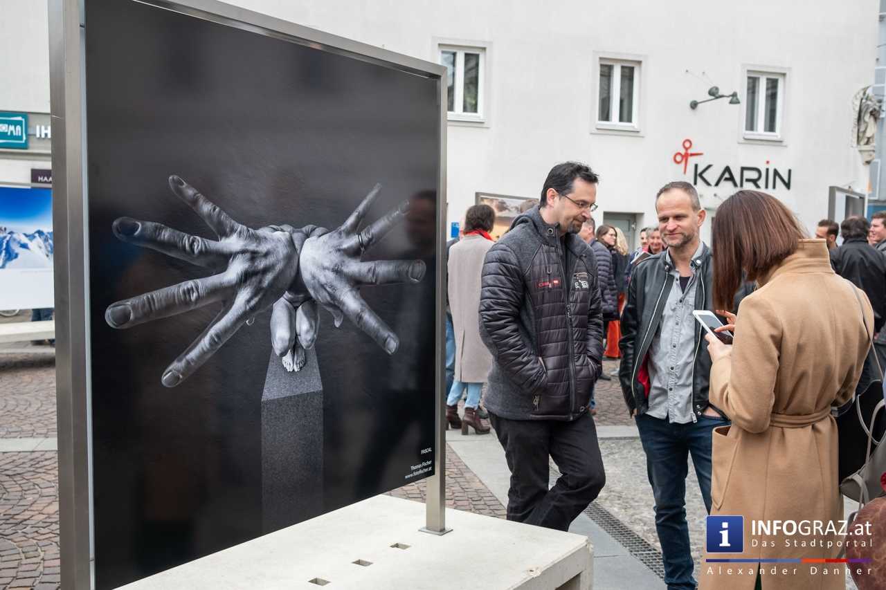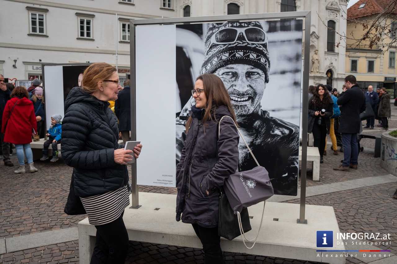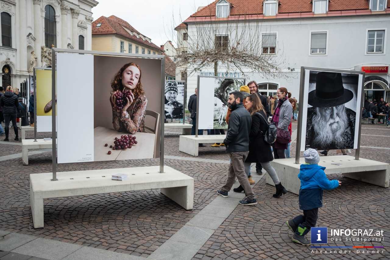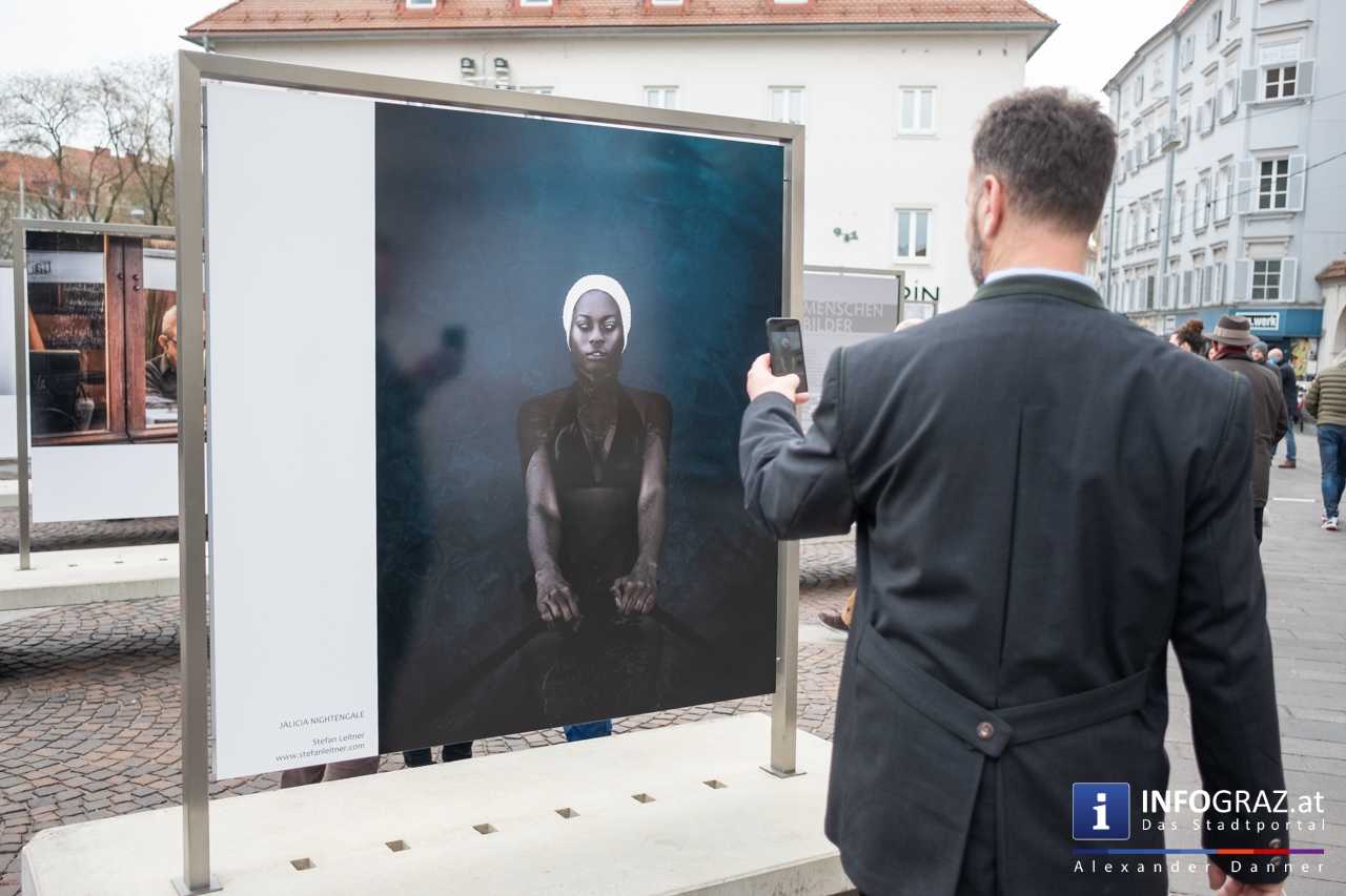 Am Mariahilferplatz in Graz wurde am Samstagvormittag die Ausstellung "Menschenbilder 2019" eröffnet. 55 heimische Fotografen werden präsentiert. Graz ist bis 15. April 2019 die erste von zwölf Stationen.