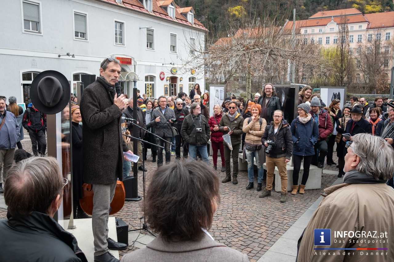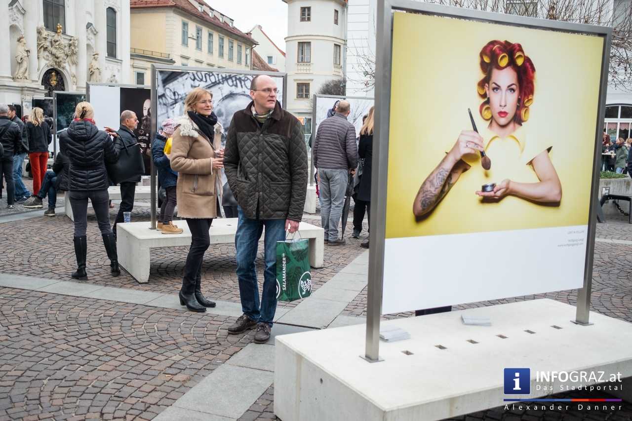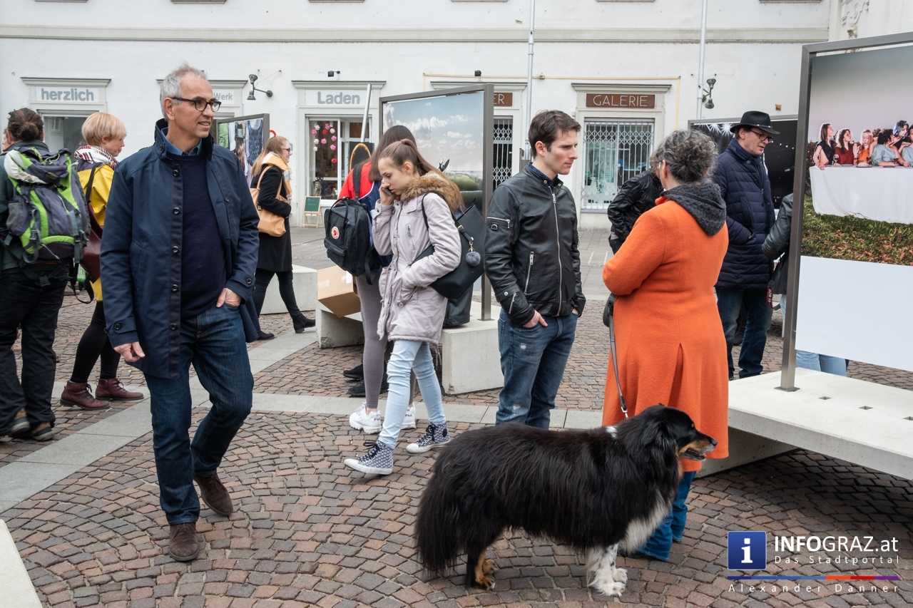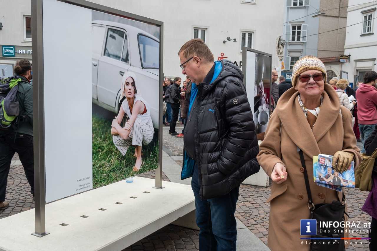 Am Mariahilferplatz in Graz wurde am Samstagvormittag die Ausstellung "Menschenbilder 2019" eröffnet. 55 heimische Fotografen werden präsentiert. Graz ist bis 15. April 2019 die erste von zwölf Stationen.