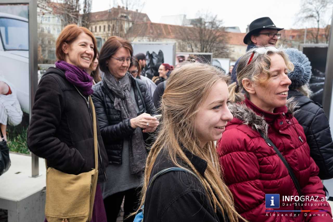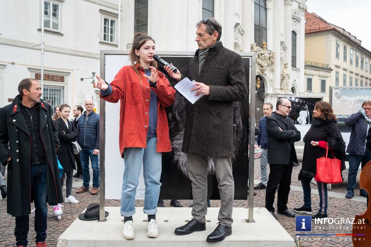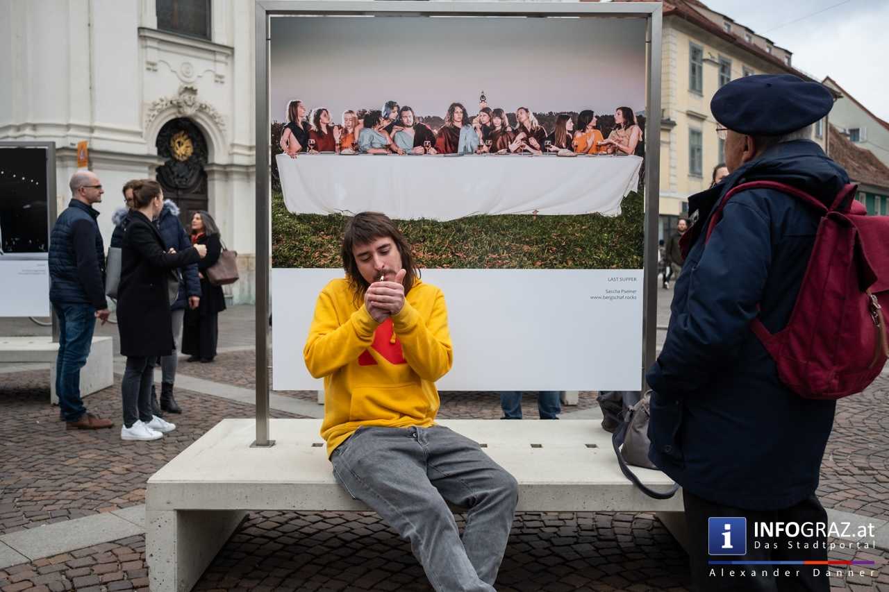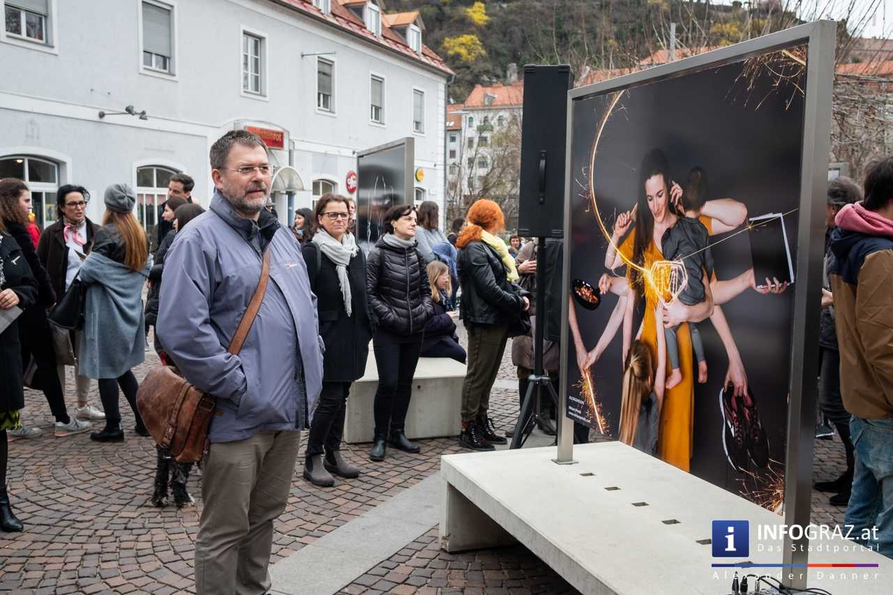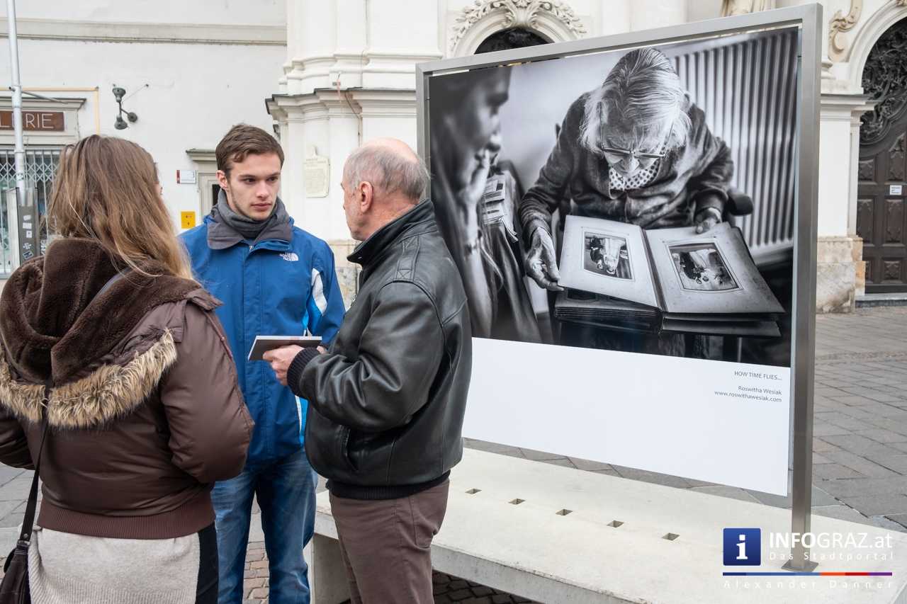 Am Mariahilferplatz in Graz wurde am Samstagvormittag die Ausstellung "Menschenbilder 2019" eröffnet. 55 heimische Fotografen werden präsentiert. Graz ist bis 15. April 2019 die erste von zwölf Stationen.