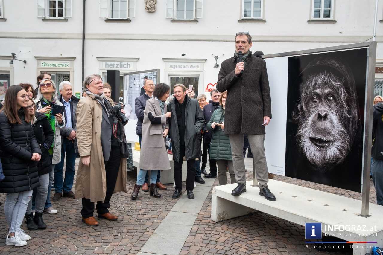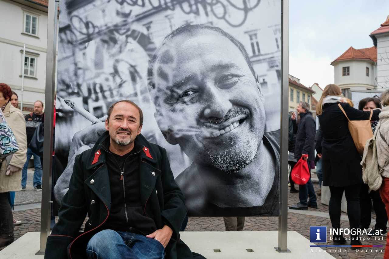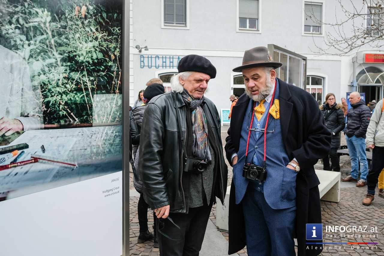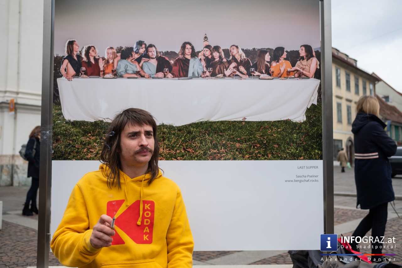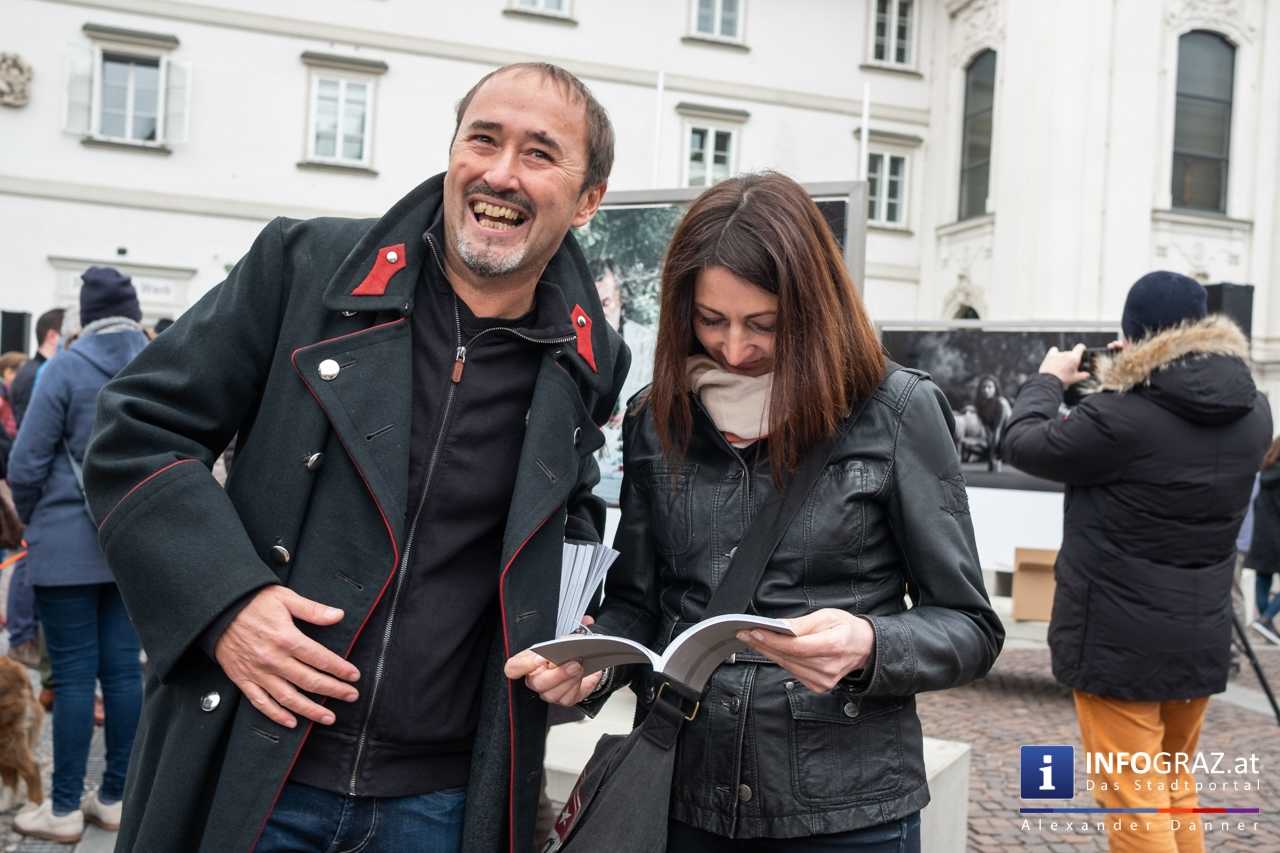 Am Mariahilferplatz in Graz wurde am Samstagvormittag die Ausstellung "Menschenbilder 2019" eröffnet. 55 heimische Fotografen werden präsentiert. Graz ist bis 15. April 2019 die erste von zwölf Stationen.