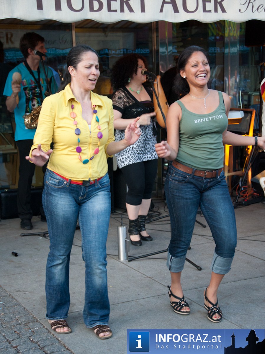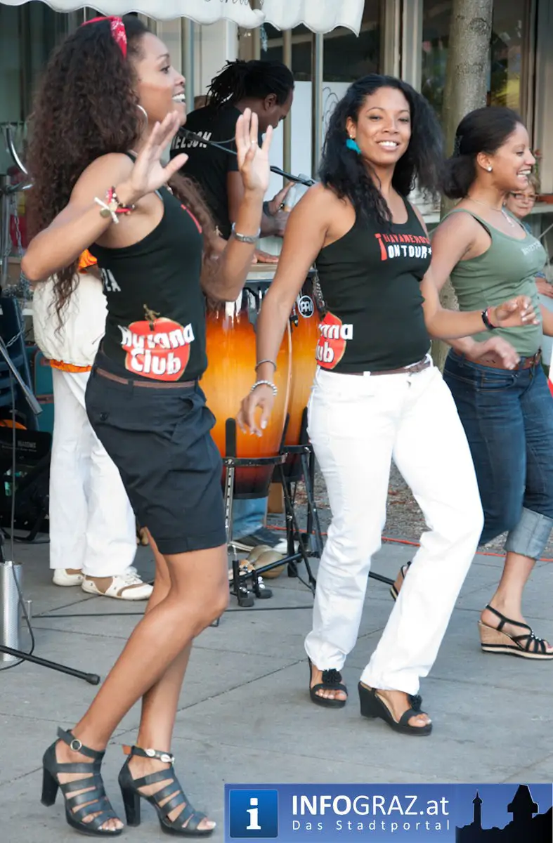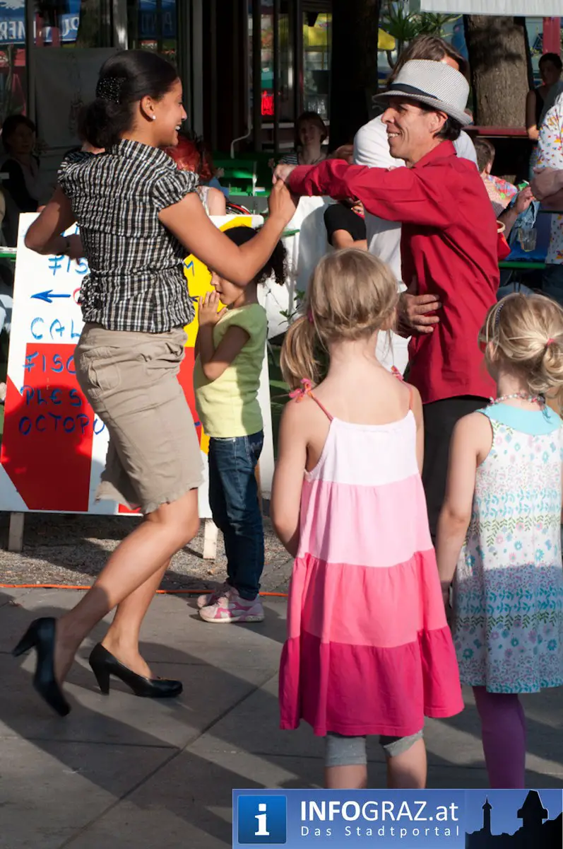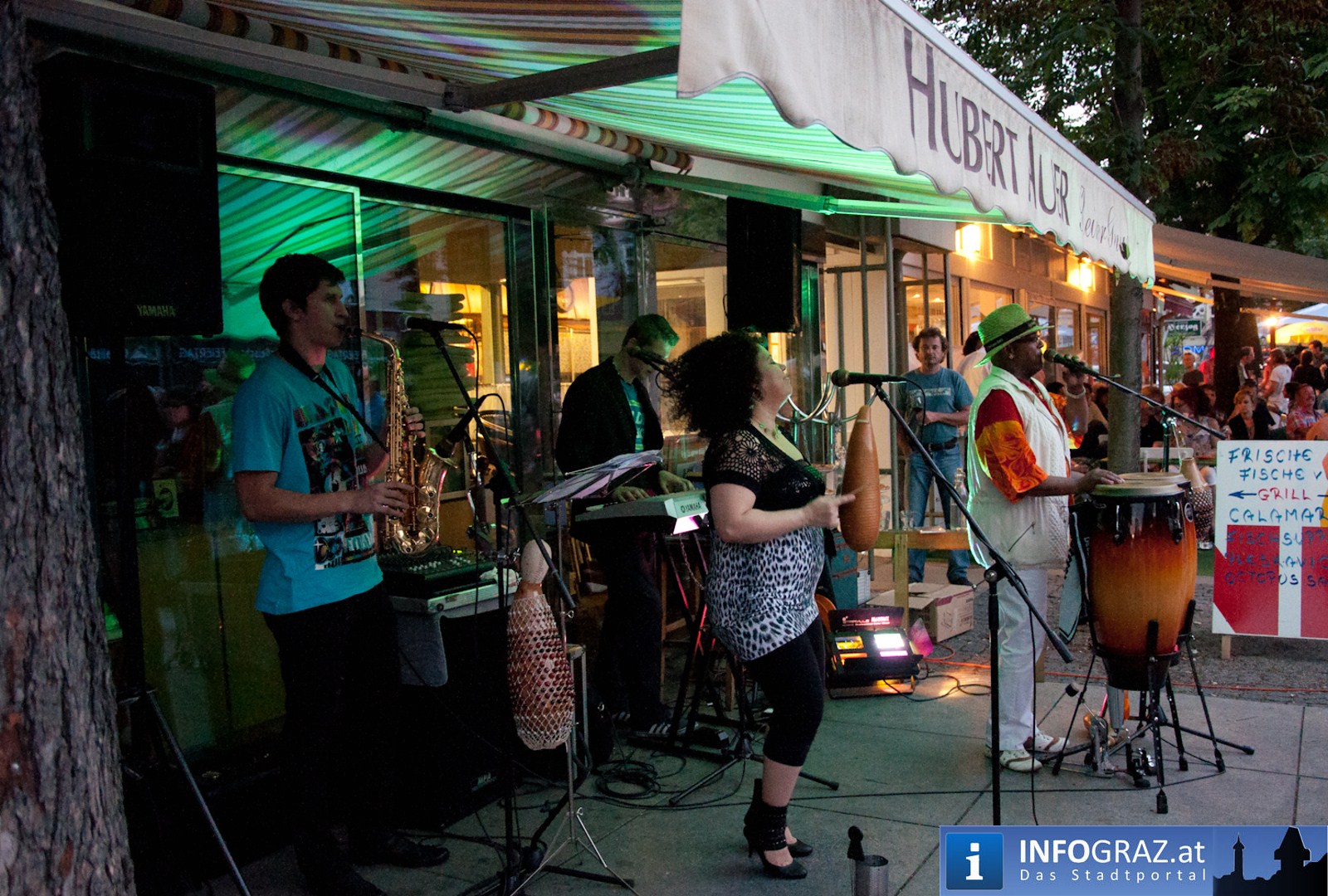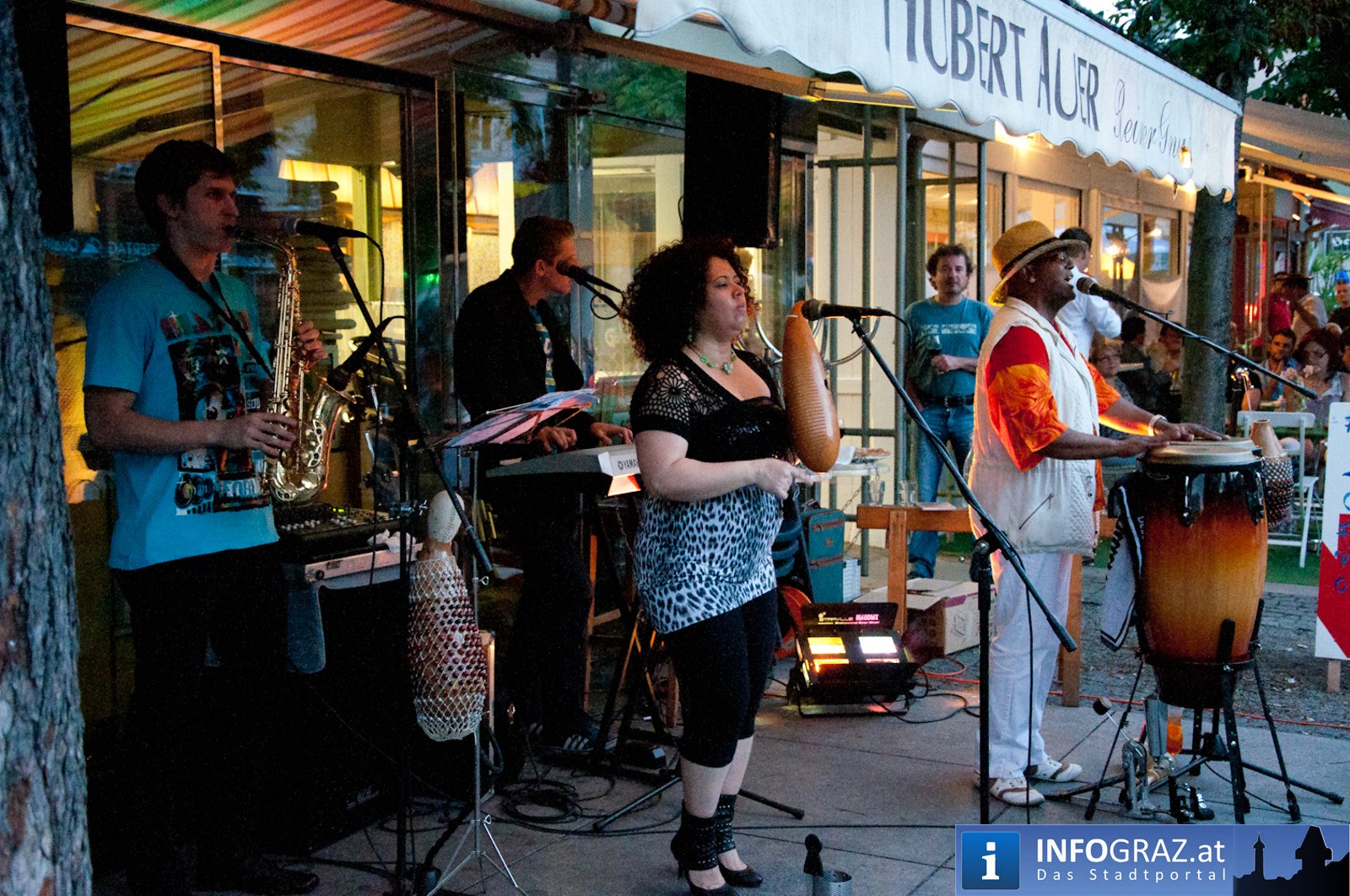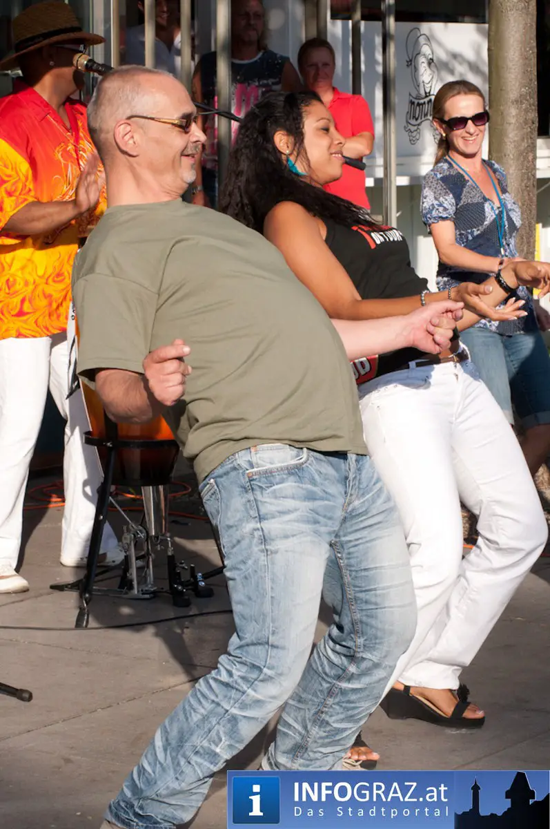 Kubanisches Flair am Marktplatz am Lend! Silvio Gabriel bringt mit seiner Band „Cuba libre“ Rhythmus in die Grazer Innenstadt.