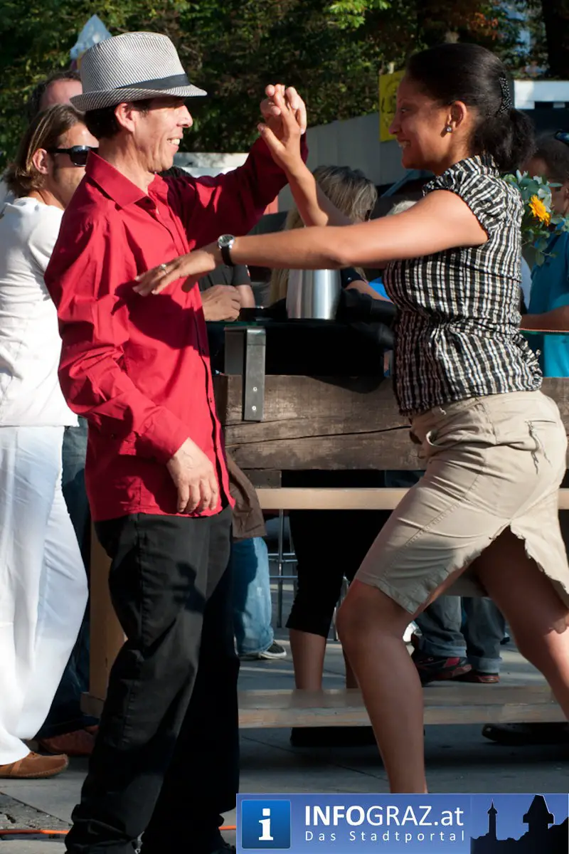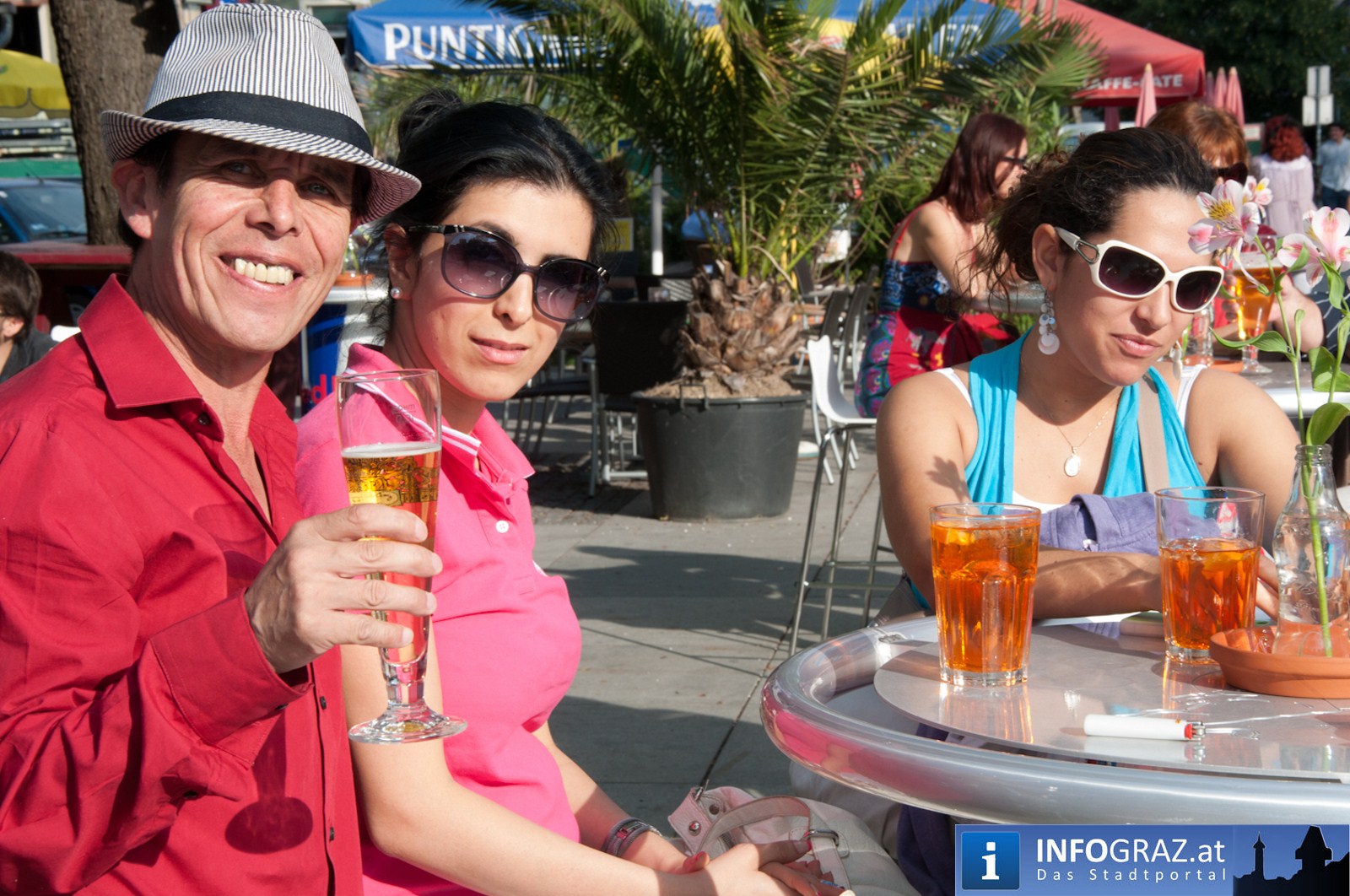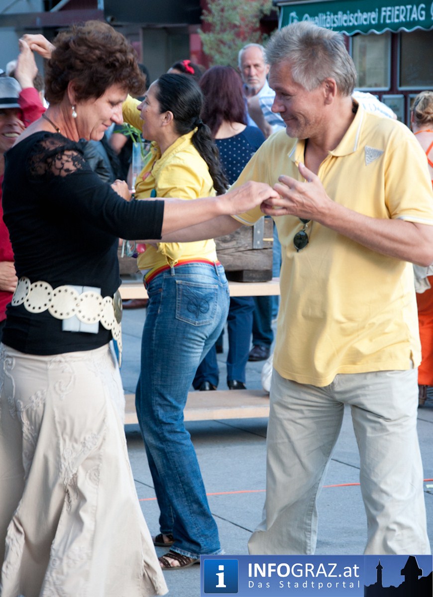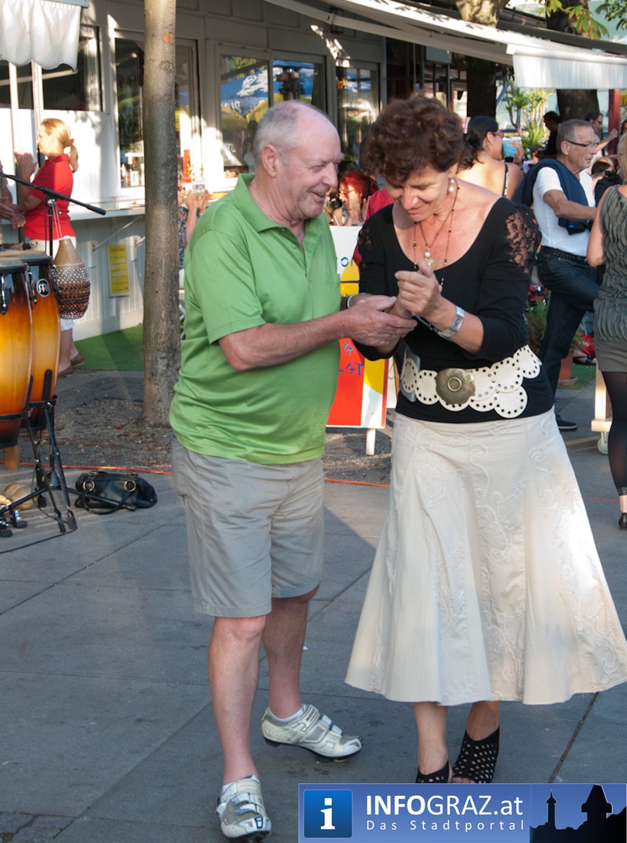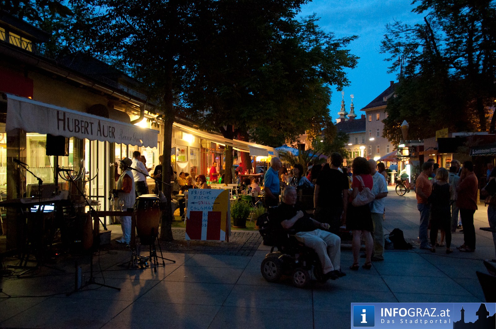 Kubanisches Flair am Marktplatz am Lend! Silvio Gabriel bringt mit seiner Band „Cuba libre“ Rhythmus in die Grazer Innenstadt.