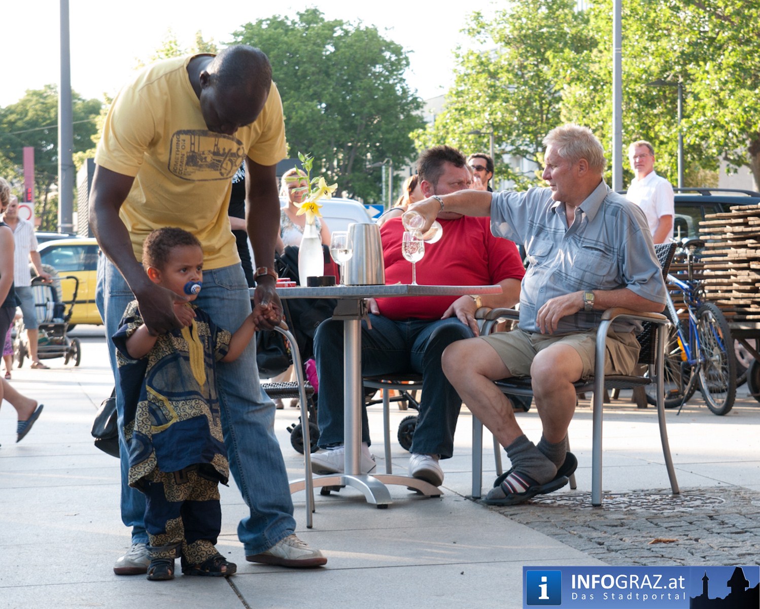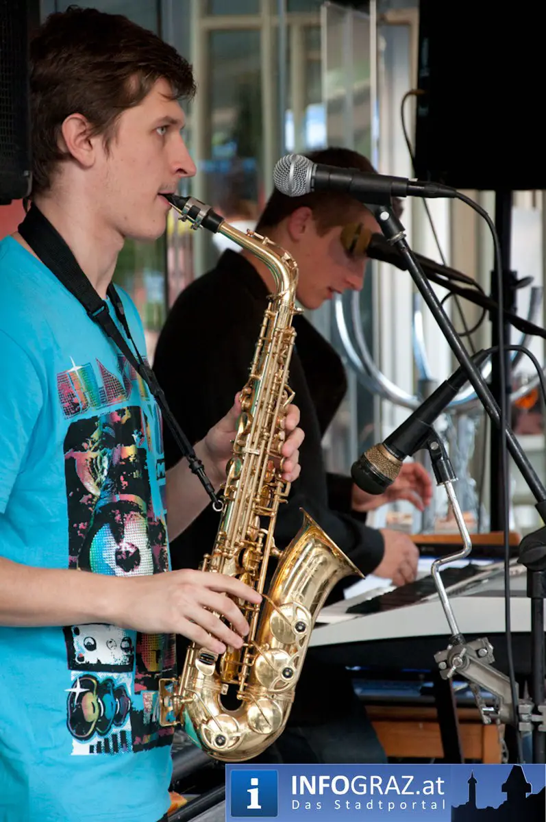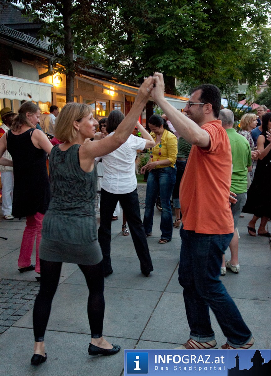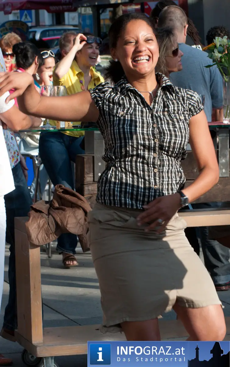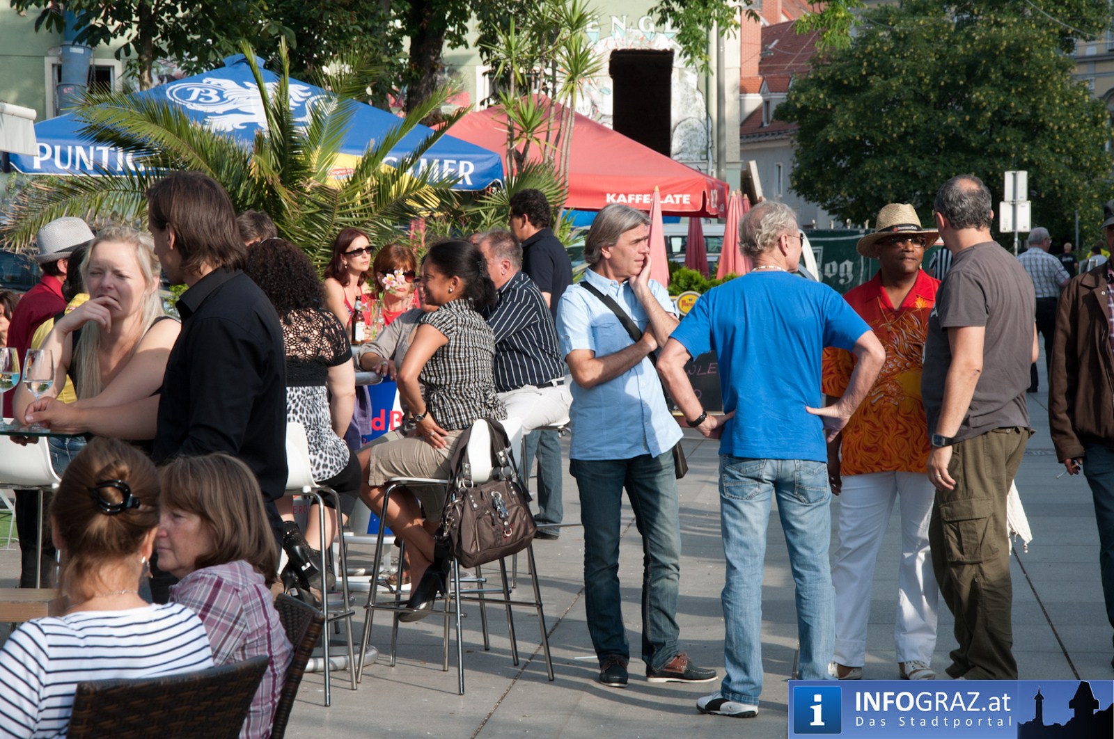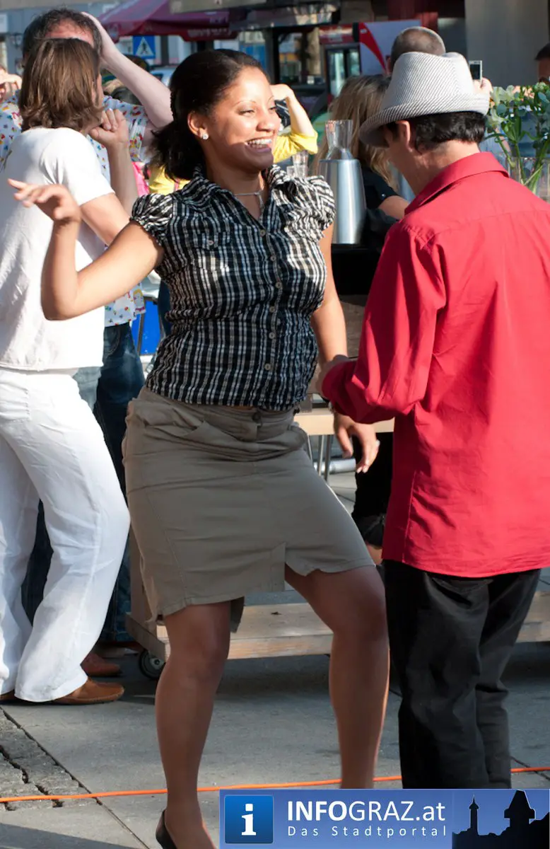 Kubanisches Flair am Marktplatz am Lend! Silvio Gabriel bringt mit seiner Band „Cuba libre“ Rhythmus in die Grazer Innenstadt.