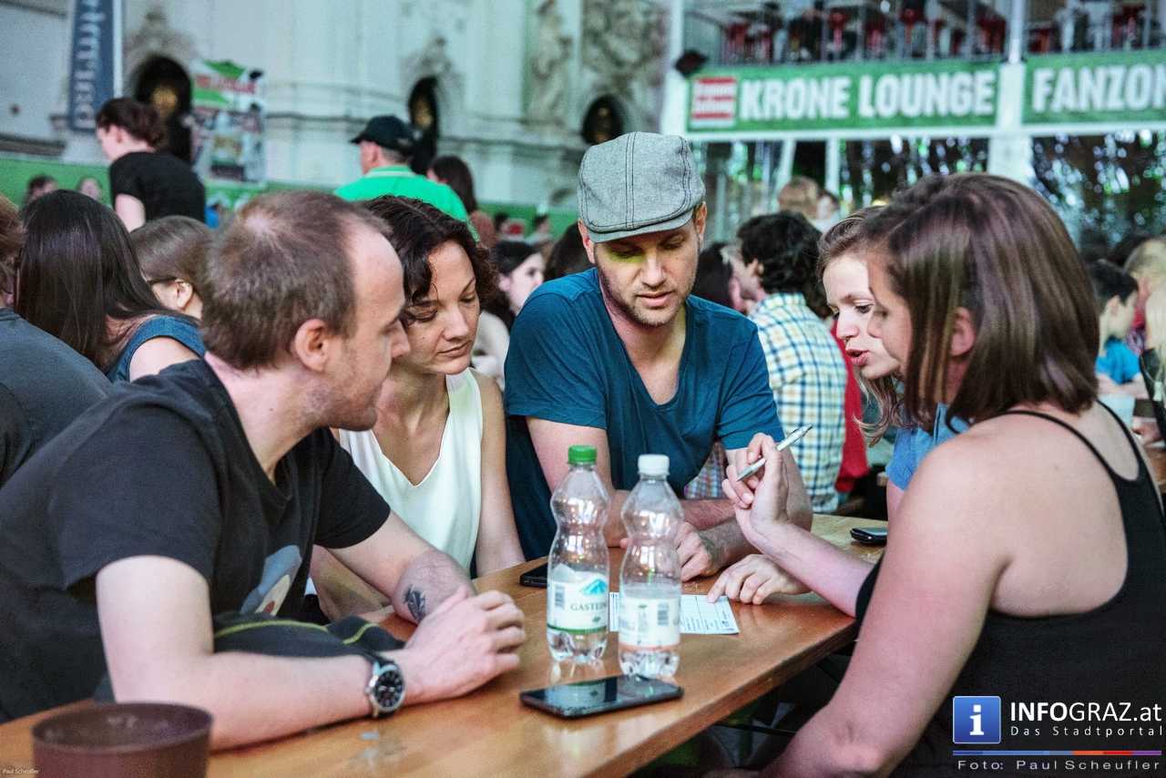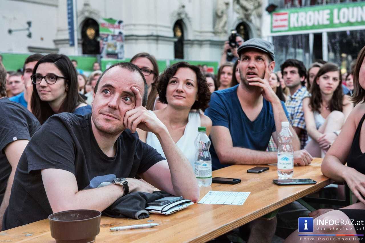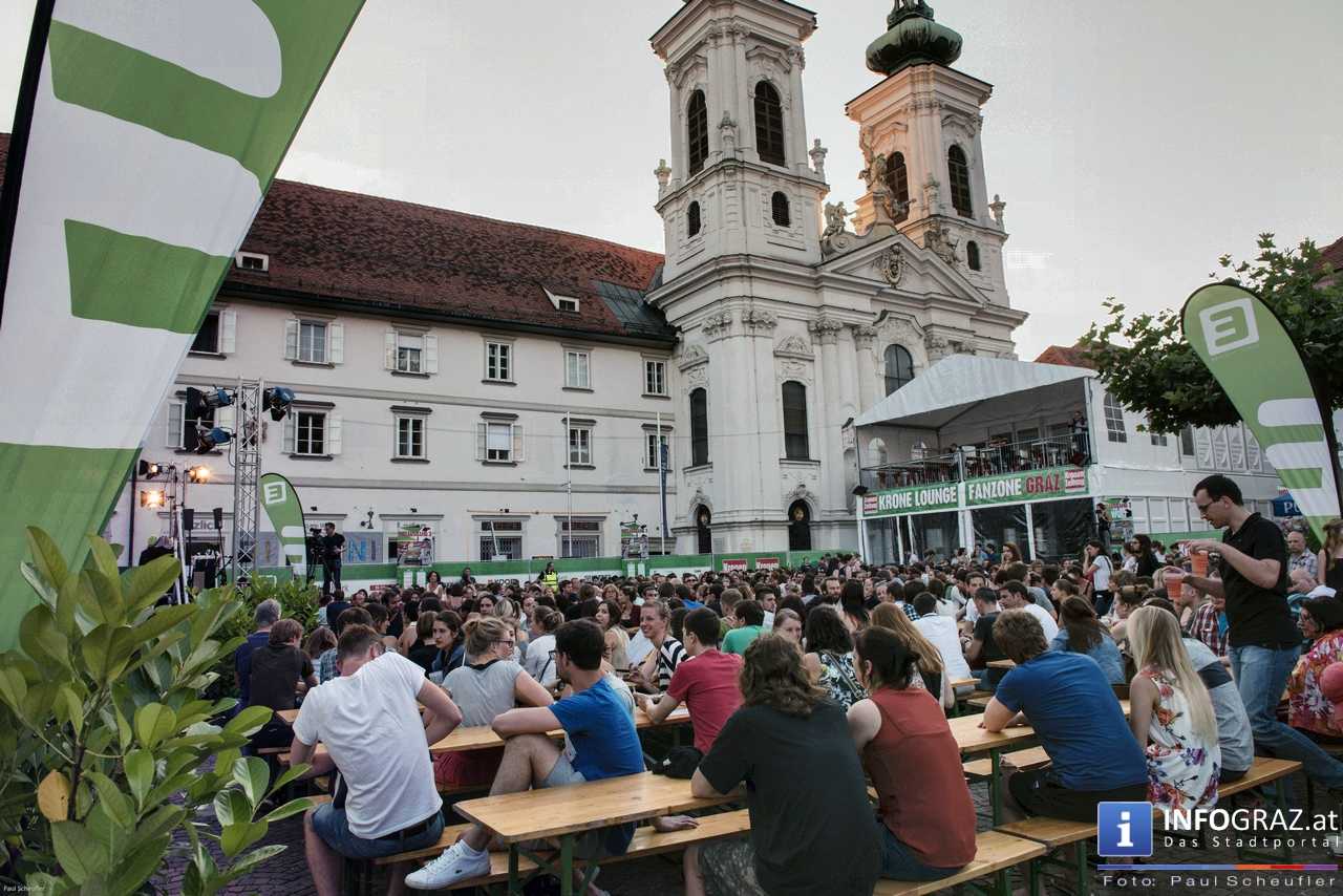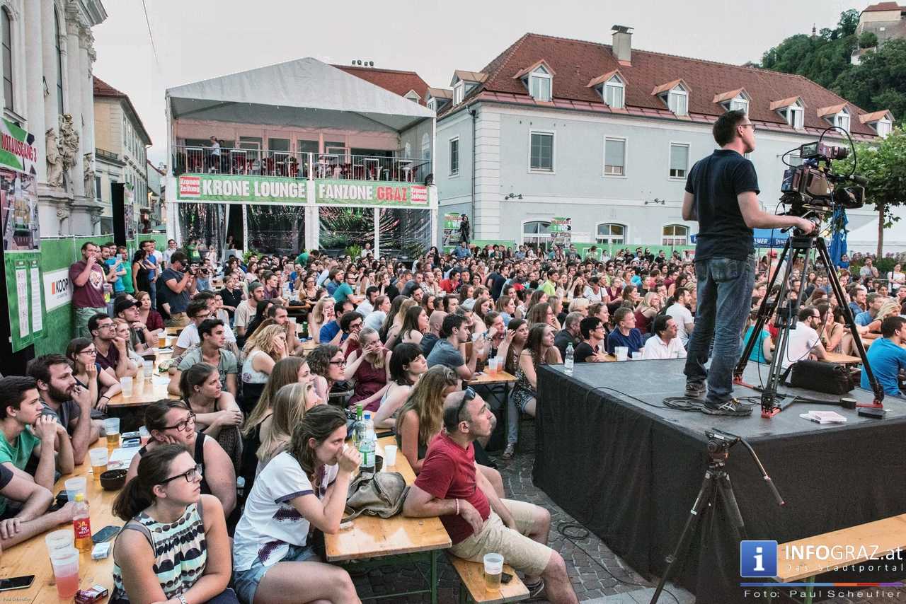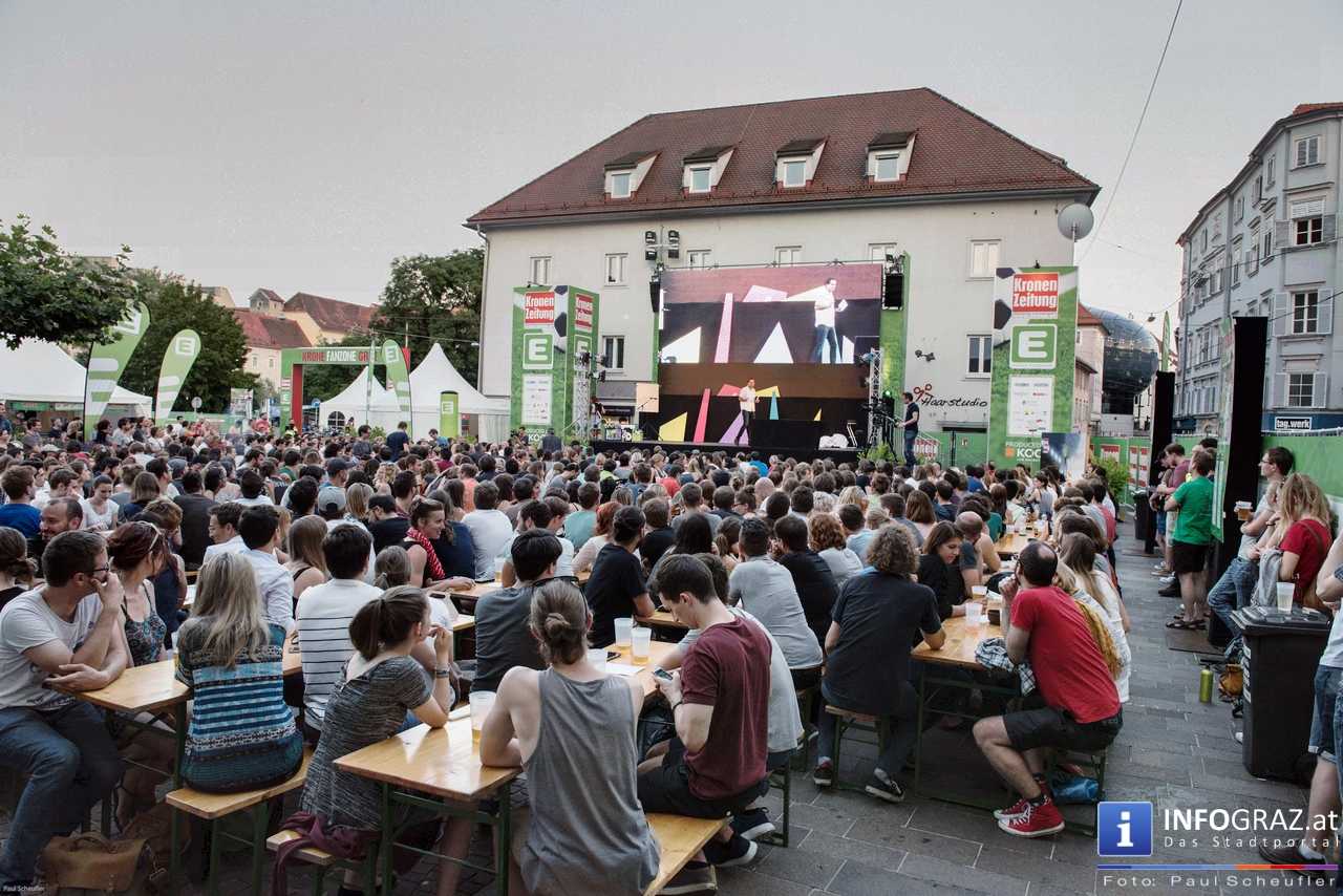 Während eines fußballfreien Tages verwandelt sich die EM-Public-Viewing-Area am Mariahilferplatz zur Bühne des steirischen sience slam. Bei diesem Event haben nominierte Kandidaten und Kandidatinnen 6 Minuten Zeit, ihre eigene Forschung so verständlich wie möglich zu präsentieren. Dabei ist von Schauspiel über Requisiten und Musikeinspielungen fast alles erlaubt. Am Ende gilt es, die 850 Zuseher bzw. Zuseherinnen von sich und seiner Arbeit zu überzeugen.