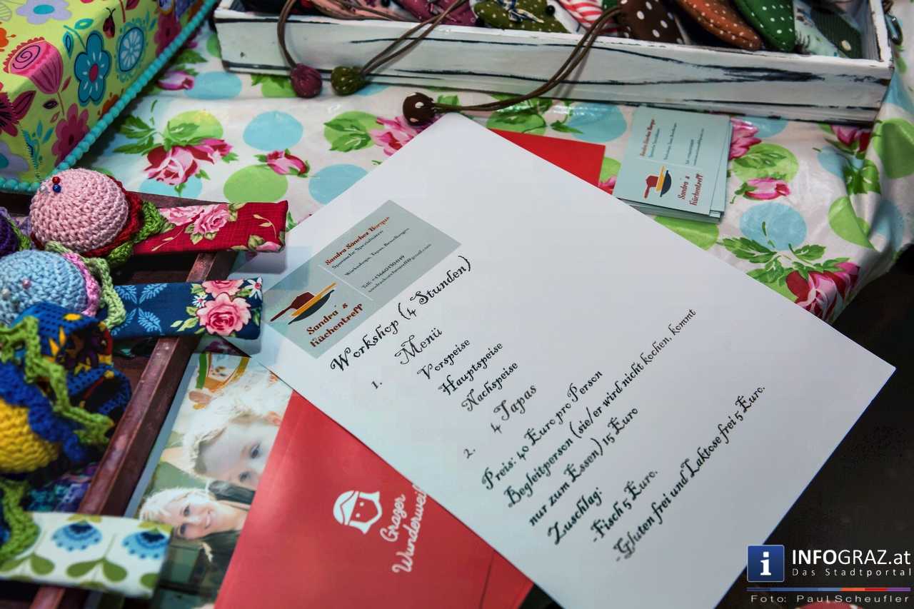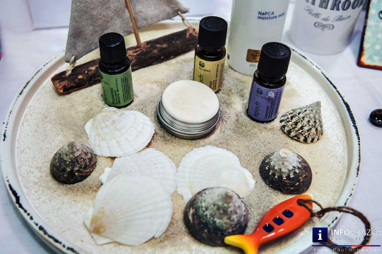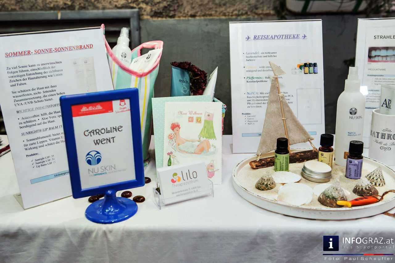 Kulinarische Köstlichkeiten, Schmuck, Kosmetik, Mode, Accessoires, Gemälde und Kunsthandwerk wurden angeboten. Neben biologischem Olivenöl, selbst gemachter Marmelade gab es auch schon Mützen für den nächsten Winter. Auch die Schönheit kam nicht zu kurz – Cremen, Zahnpasten, Frischekosmetik und vieles mehr gab es zu diesem Thema.