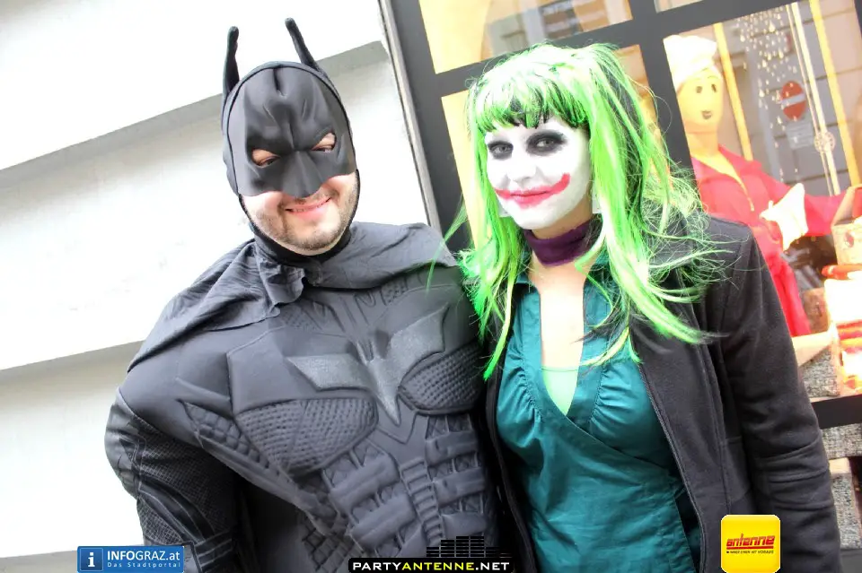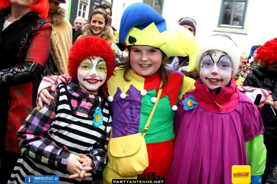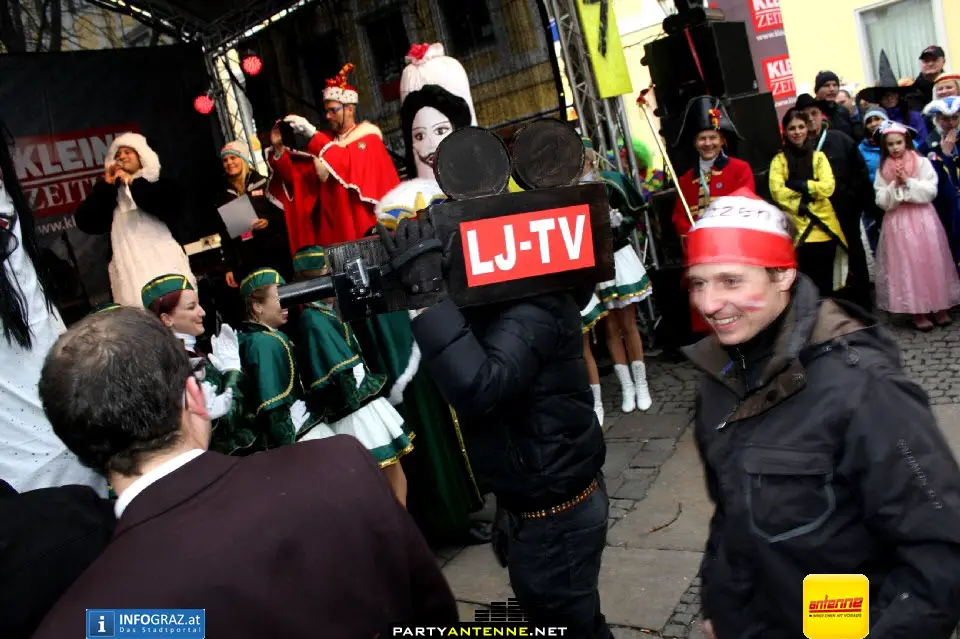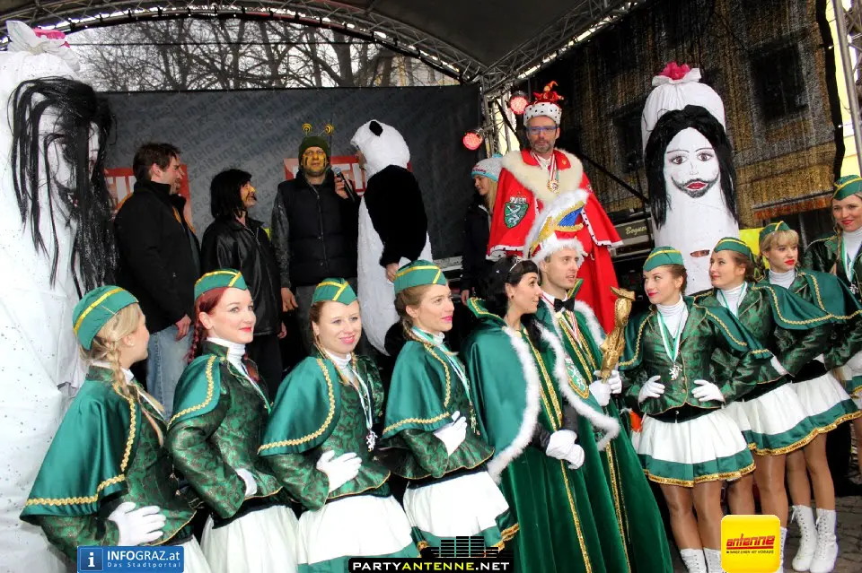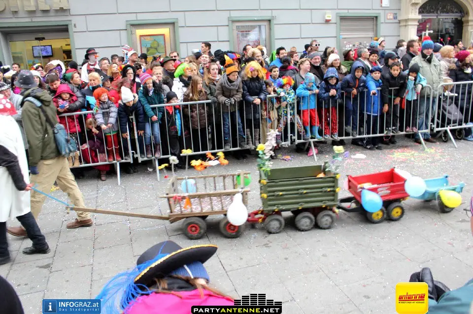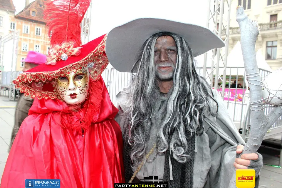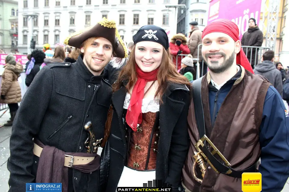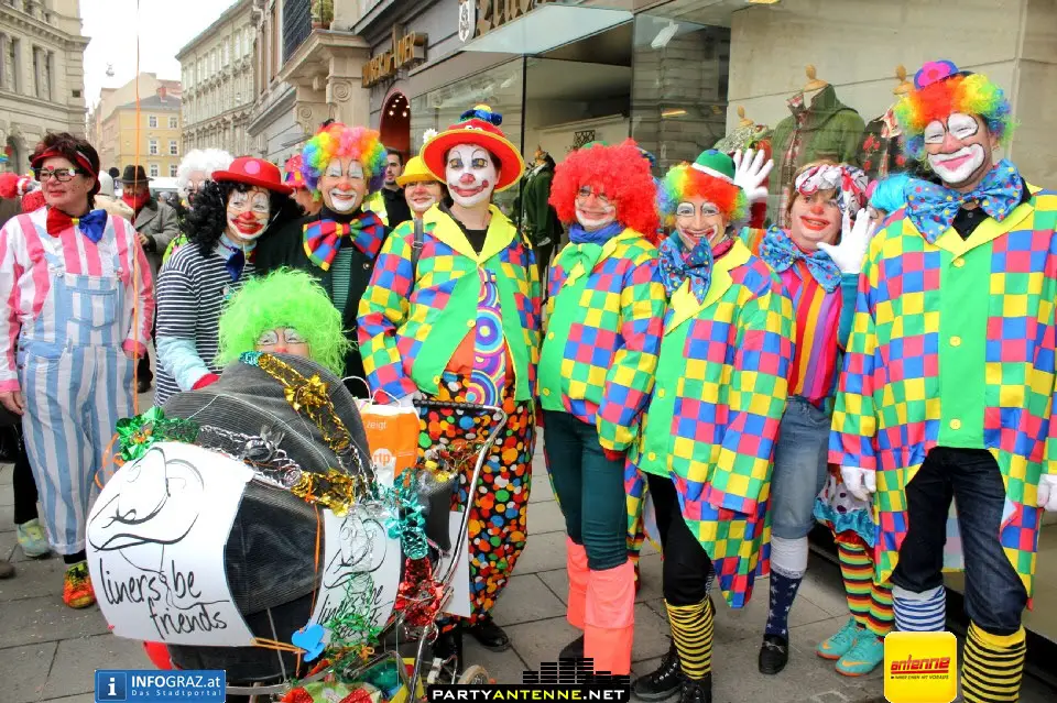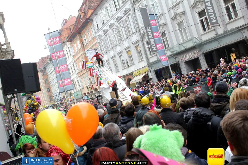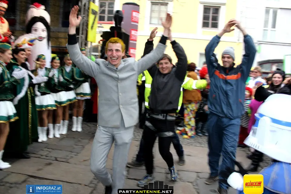 Beim diesjährigen Faschingsumzug wurde in Graz wieder allerhand Skurriles, Erstaunliches und Unterhaltsames geboten. Seltsamste Gestalten - riesige Conchita-Würste, sexy Cowgirls, Polizisten, Piraten, Geistliche, Superhelden und vieles mehr - zelebrierten den verrücktesten Tag des Jahres. © Partyantenne