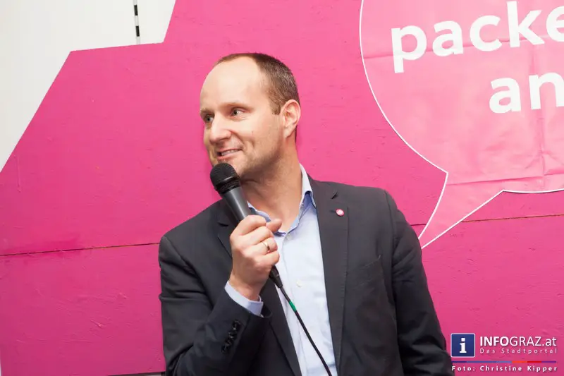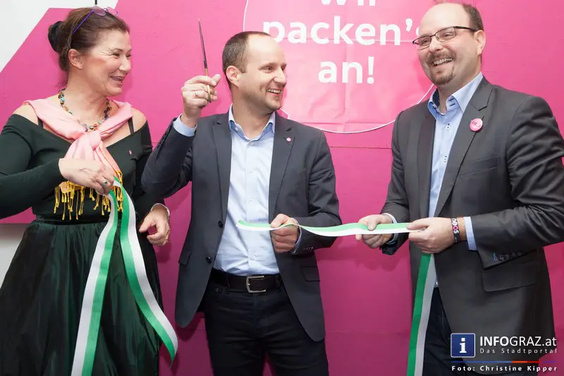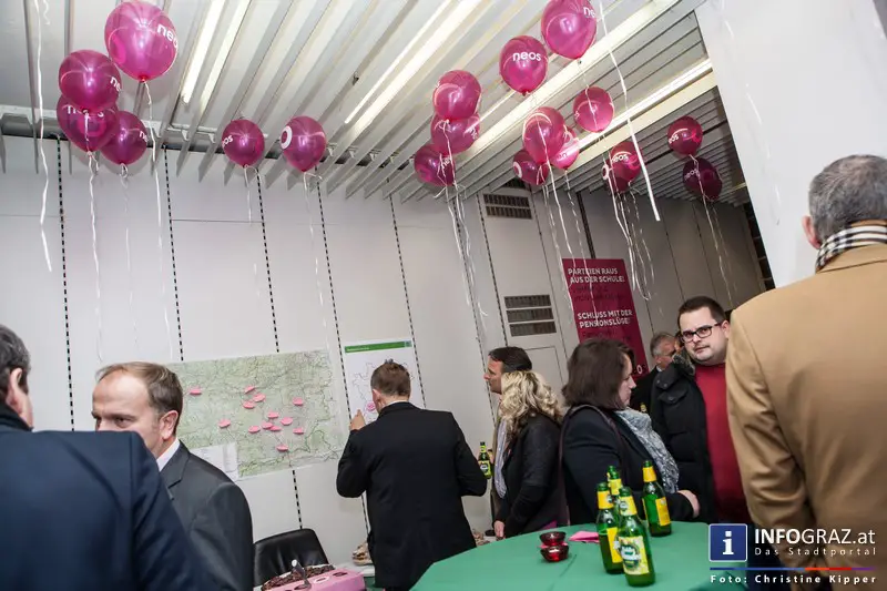 Auch Parteichef Matthias Strolz wollte an diesem Ereignis teilnehmen und kam zur feierlichen Eröffnung.