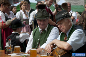 Abendstimmung am Mariahilferplatz Graz, der Treffpunkt für alle, die anlässlich der beliebten Murszene bei sommerlichen Temperaturen in der Grazer Innenstadt Jazz und Blues genießen wollen.