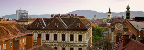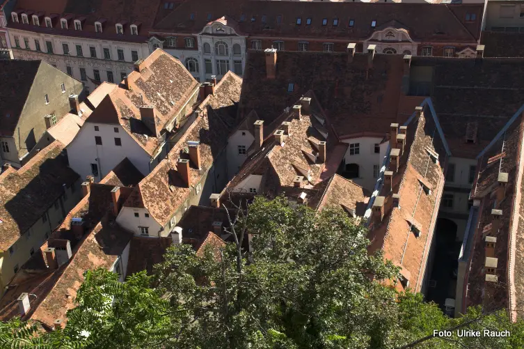 Dachlandschaft Graz erster Bezirk, gesehen vom Schlossbergsteig