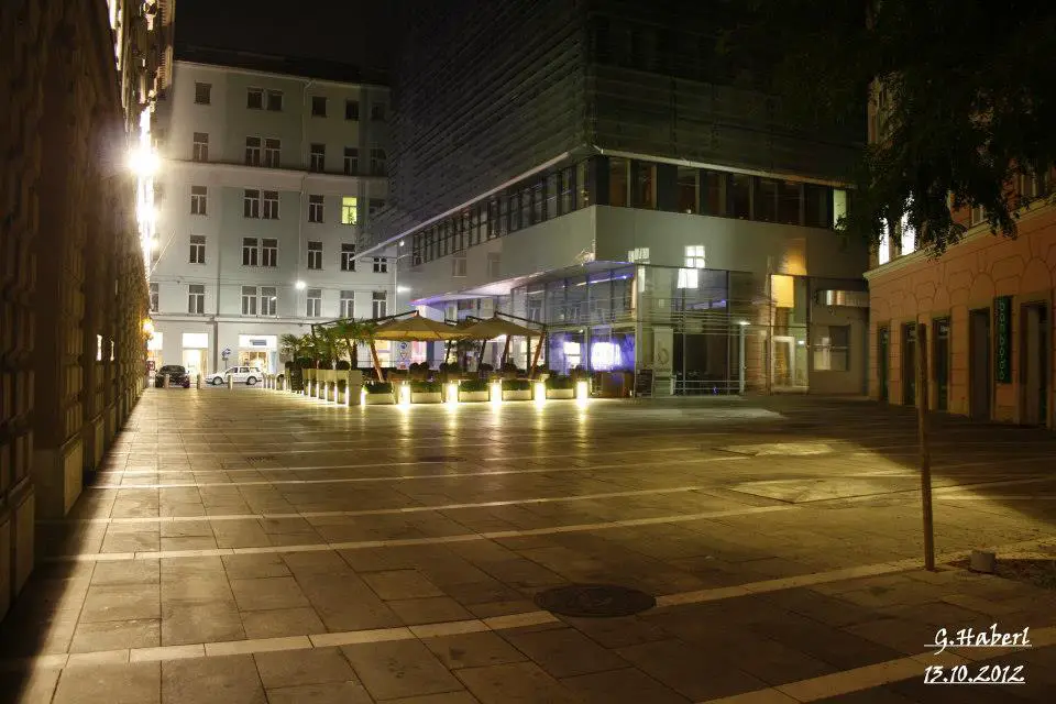 GVB Haltestelle am Grazer Hauptplatz bei Nacht