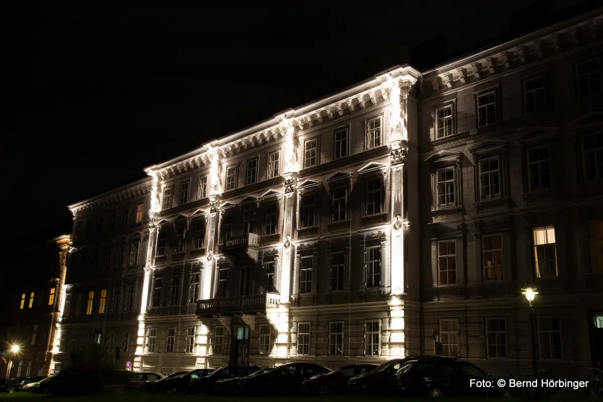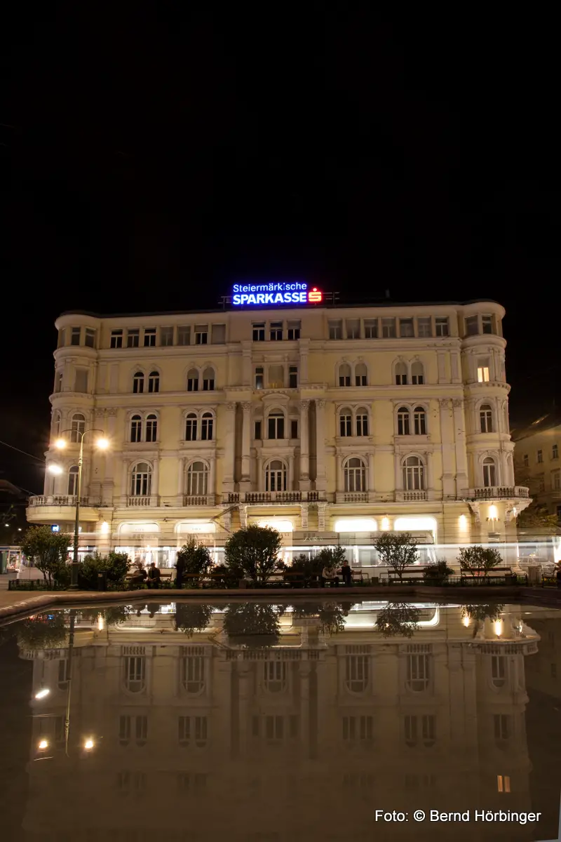 Haus am Grazer Opernring bei Nacht. Graz 1. Bezirk - Innere Stadt