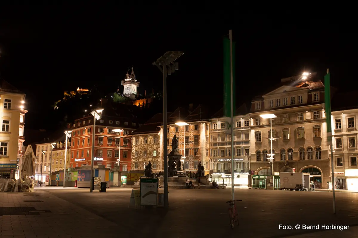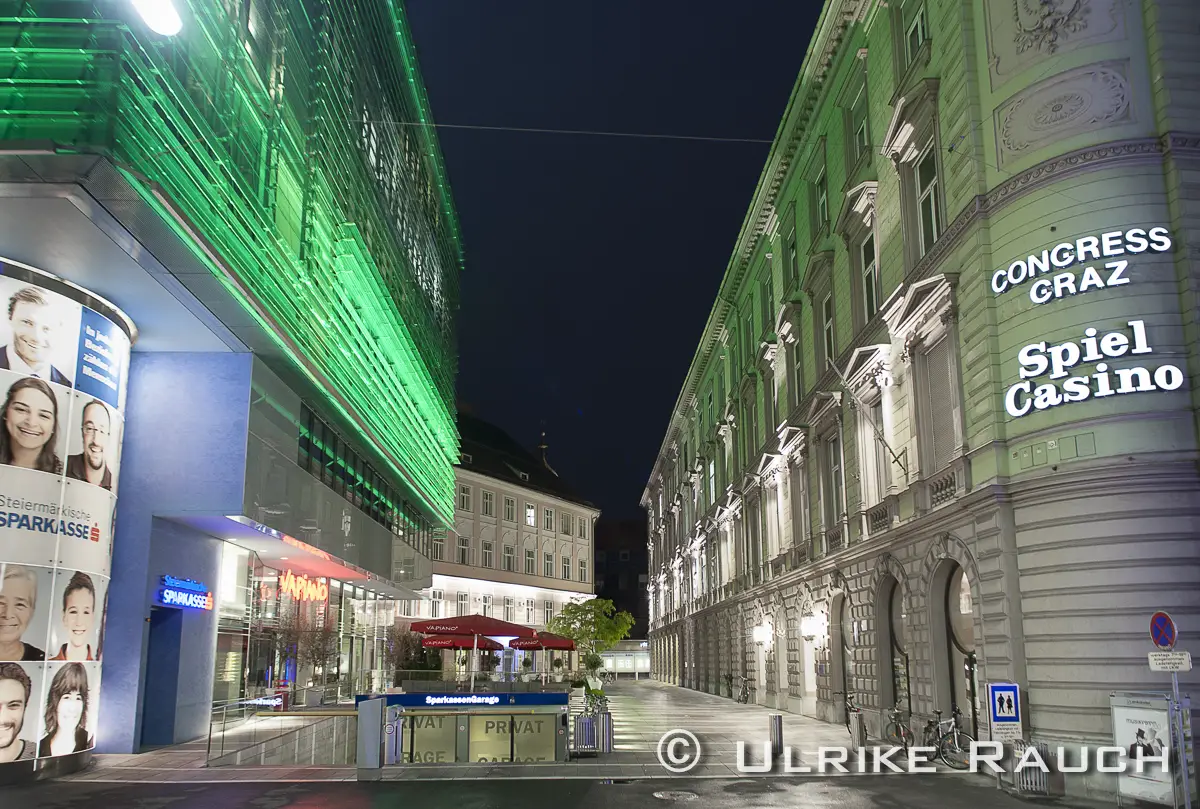 Impressionen von Grazer Häusern bei Nacht. Graz 1. Bezirk - Innere Stadt