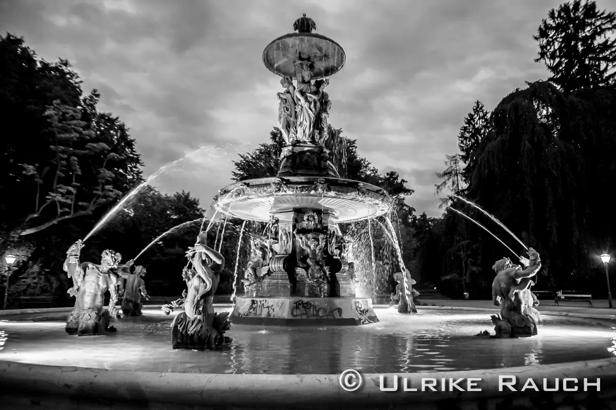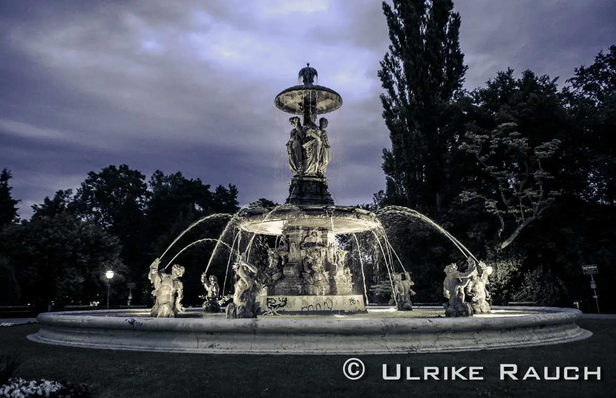 Stadtpark Graz 1. erster Bezirk Stadtparkbrunnen bei Nacht