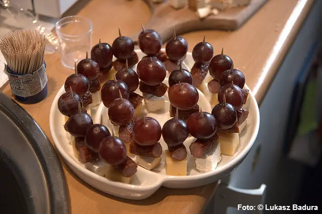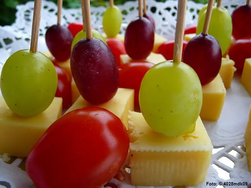 Käsespießchen mit Weintrauben und Cocktailtomaten