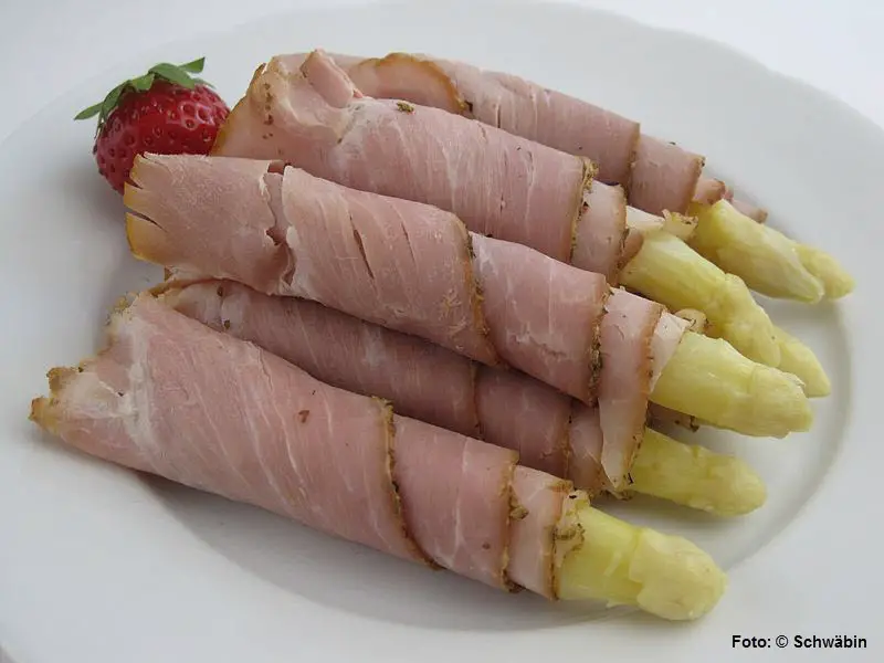 Schinkenröllchen, ganz klassisch mit Spargel