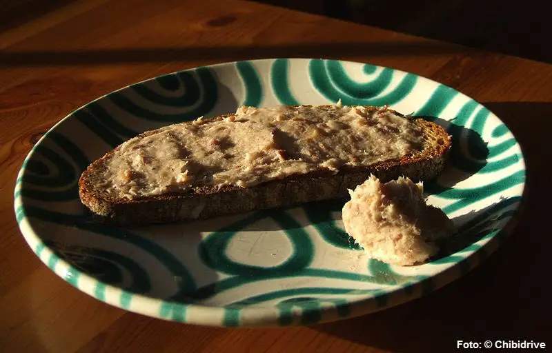Verhackert (österreichischer Brotaufstrich aus gehacktem Speck) auf Schwarzbrot