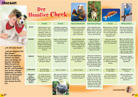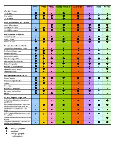 Die folgende Übersicht kann eine Hilfe sein, indem sie alle wichtigen Fragen anspricht, die bei einer Entscheidung für ein Tier berücksichtigt werden sollten.