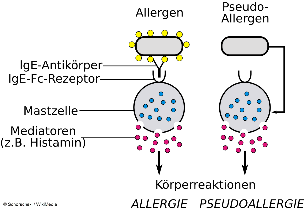 Da eine Allergie, eine Pseudoallergie oder eine Intoleranz ähnliche Symptome verursachen können, werden diese Begriffe im allgemeinen Sprachgebrauch undifferenziert und fälschlicherweise oft synonym verwendet. Richtiger wäre, solange die Diagnose nicht gesichert ist, die neutralen Begriffe Unverträglichkeit, Überempfindlichkeitsreaktion oder unerwünschte Nebenwirkung zu verwenden.