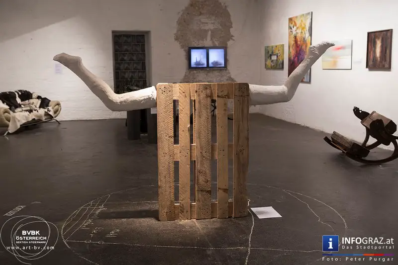 Berufsvereinigung der Bildenden KünstlerInnen Steiermarks,ausstellung,bilder,skulpturen,installationen,kontrapunkt,schnelllebige zeit,unterschiedlichste zugänge zur thematik,bewundern