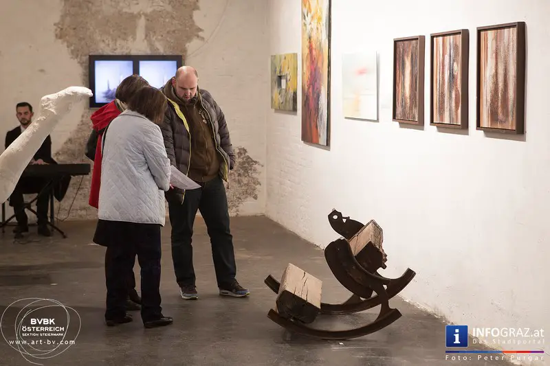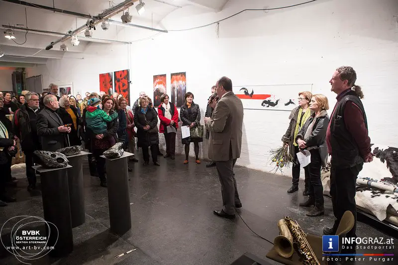vernissage,die langsamkeit der kunst,kunstfreiraum papierfabrik,13. März 2015 jahresausstellung,berufsvereinigung der bildenden künstlerinnen steiermarks,künstler,bvbk