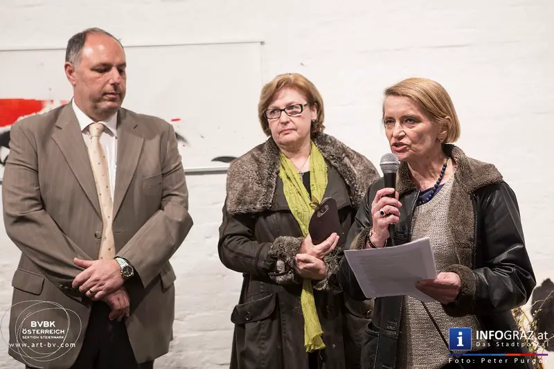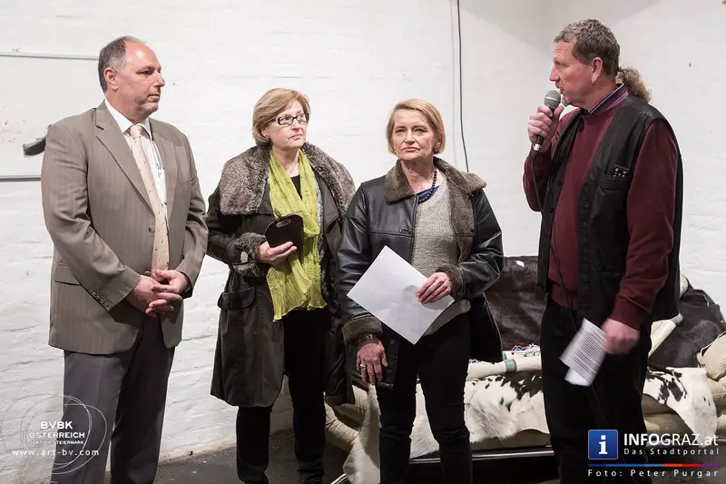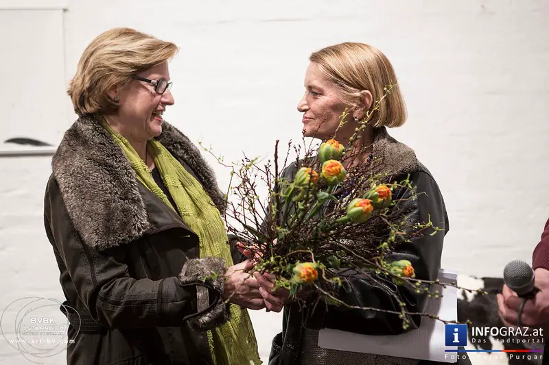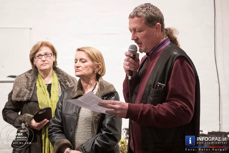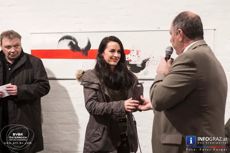vernissage,die langsamkeit der kunst,kunstfreiraum papierfabrik,gemeinderat harry pogner,edith risse,Margarethe Arvay,Adolf Bachler,Akbar Brandner,Julia Bauernfeind,Anna Baumann,Irene Daxböck-RigoirBei der Vernissage im Kunstfreiraum Papierfabrik gab es auch die Preisverleihung für die Gewinnerin des von der BVBK initiierten Grafikwettbewerbes an der HTBLVA Graz - Ortweinschule, Abtlg. Kunst und Design, Grafik- u. Kommunikationsdesign von Harald Kouba. Die vorgesehene Stadträtin Lisa Rücker war erkrankt und die Preisverleihung wurde stellvertretend von Gemeinderat Harry Pogner durchgeführt.