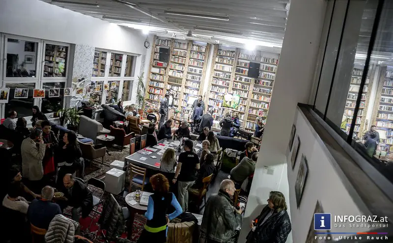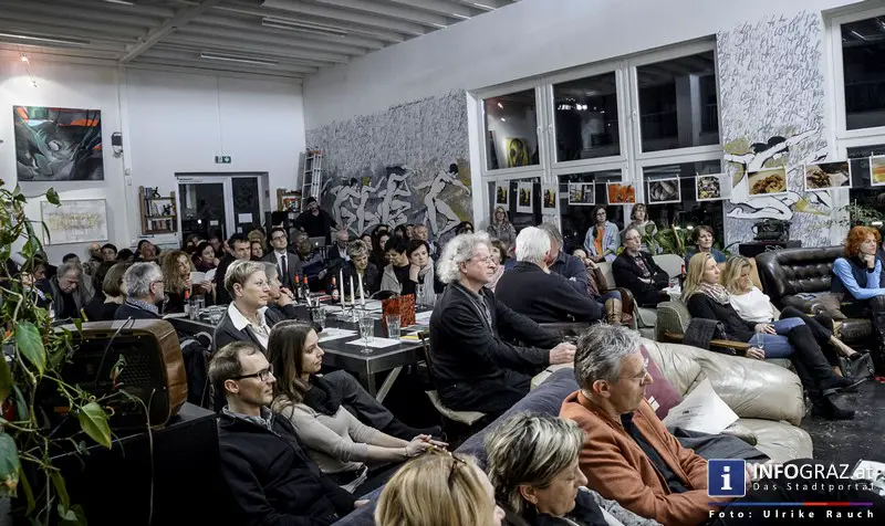 Über 100 Gäste tummelten sich im schönsten Literaturwohnzimmer Österreichs am Grazer Tagger-Areal.