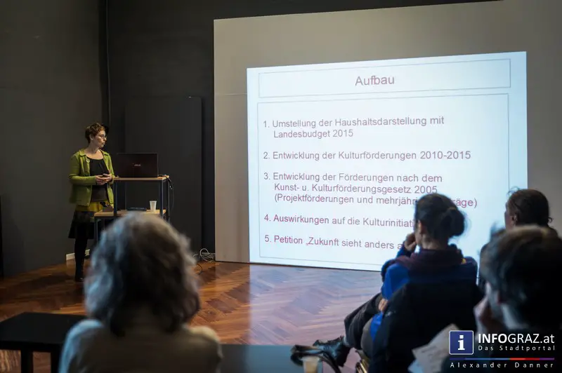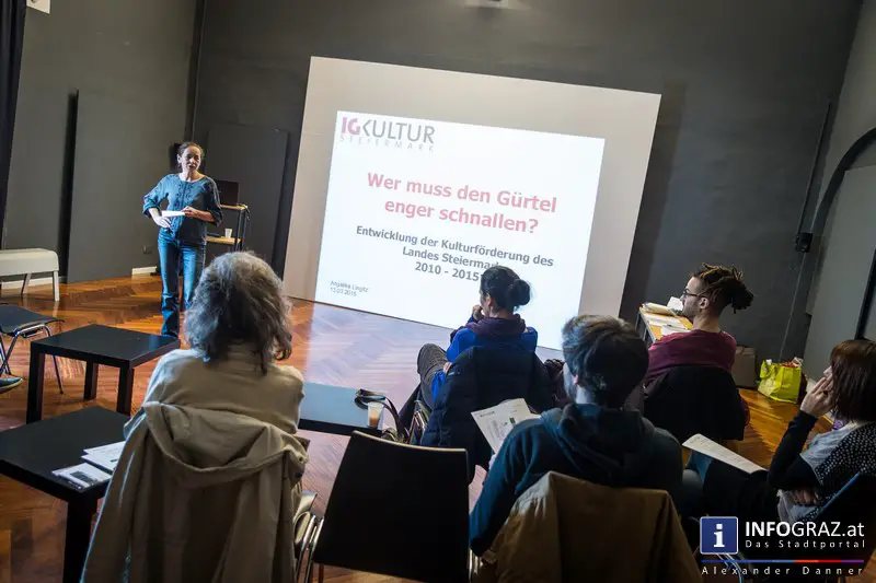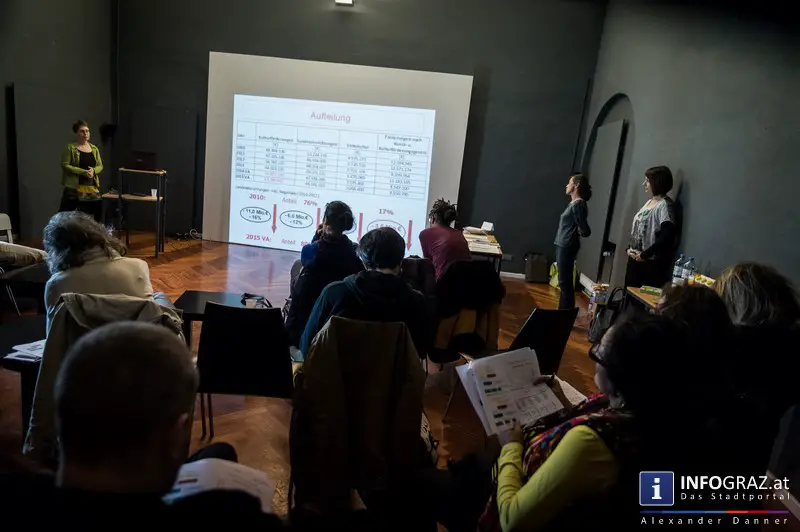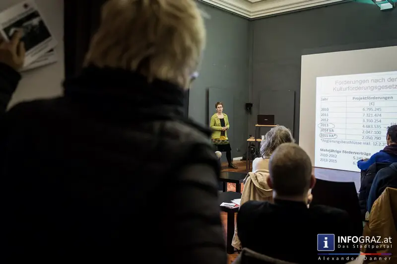 ig kultur steiermark,kulturzentrum bei den minoriten,förderpolitik,kultur,präsentieren,zahlen,gesamtbudget,land steiermark,kulturbudget,untersuchungszeitraum,ausgaben,förderungenDie IG Kultur Steiermark - der Dachverband und die Interessensvertretung von steirischen Kulturinitiativen - lud am Freitag in den KUBUS (Kulturzentrum bei den Minoriten) um ihre Studie über die Budget-Entwicklung und Förderpolitik für den Bereich Kultur in den Jahren 2010-2015 zu präsentieren.