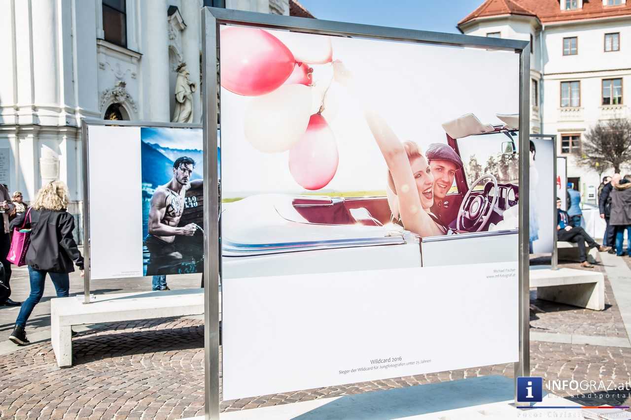 Eröffnet wurde die Open-Air-Ausstellung am 19. März 2016 und ist noch bis 13. April 2016 am Mariahilferplatz zu sehen. Danach begeben sich die Bilder auf eine Wanderausstellung nach Gleisdorf, Neumarkt, Trofaiach, Weiz, Murau, Bad Radkersburg, Kapfenberg, Deutschlandsberg, Judenburg, Leibnitz und endet am 31.12.2016 in Köflach. Die Ausstellung wurde wie in den letzten Jahren von Christian Jungwirth initiiert und gestaltet. Kurator war auch heuer wieder Horst Stasny.
