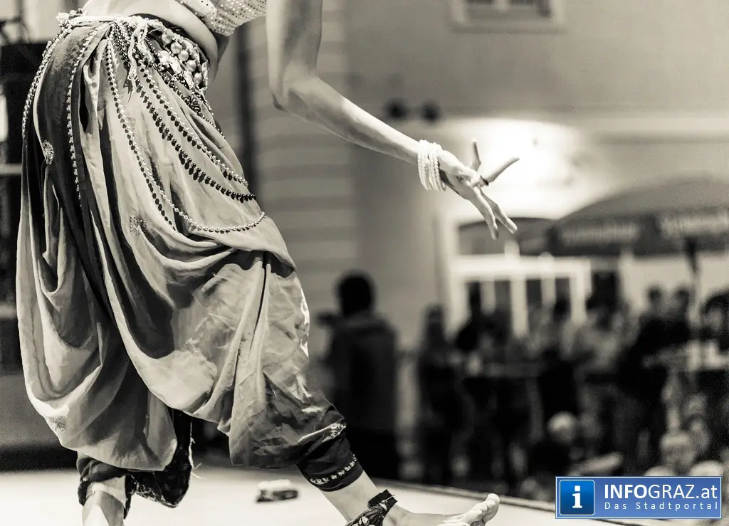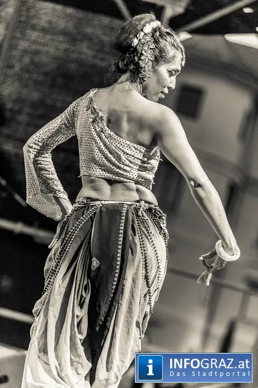 Als perfekte Ergänzung dazu fungiert die indische Tänzerin Hina Sarojini.