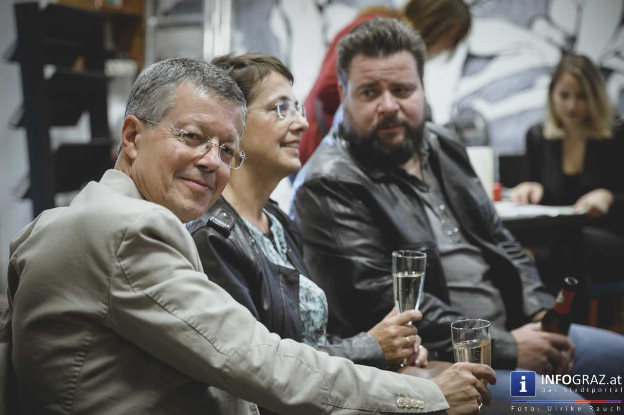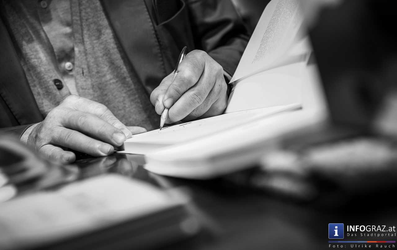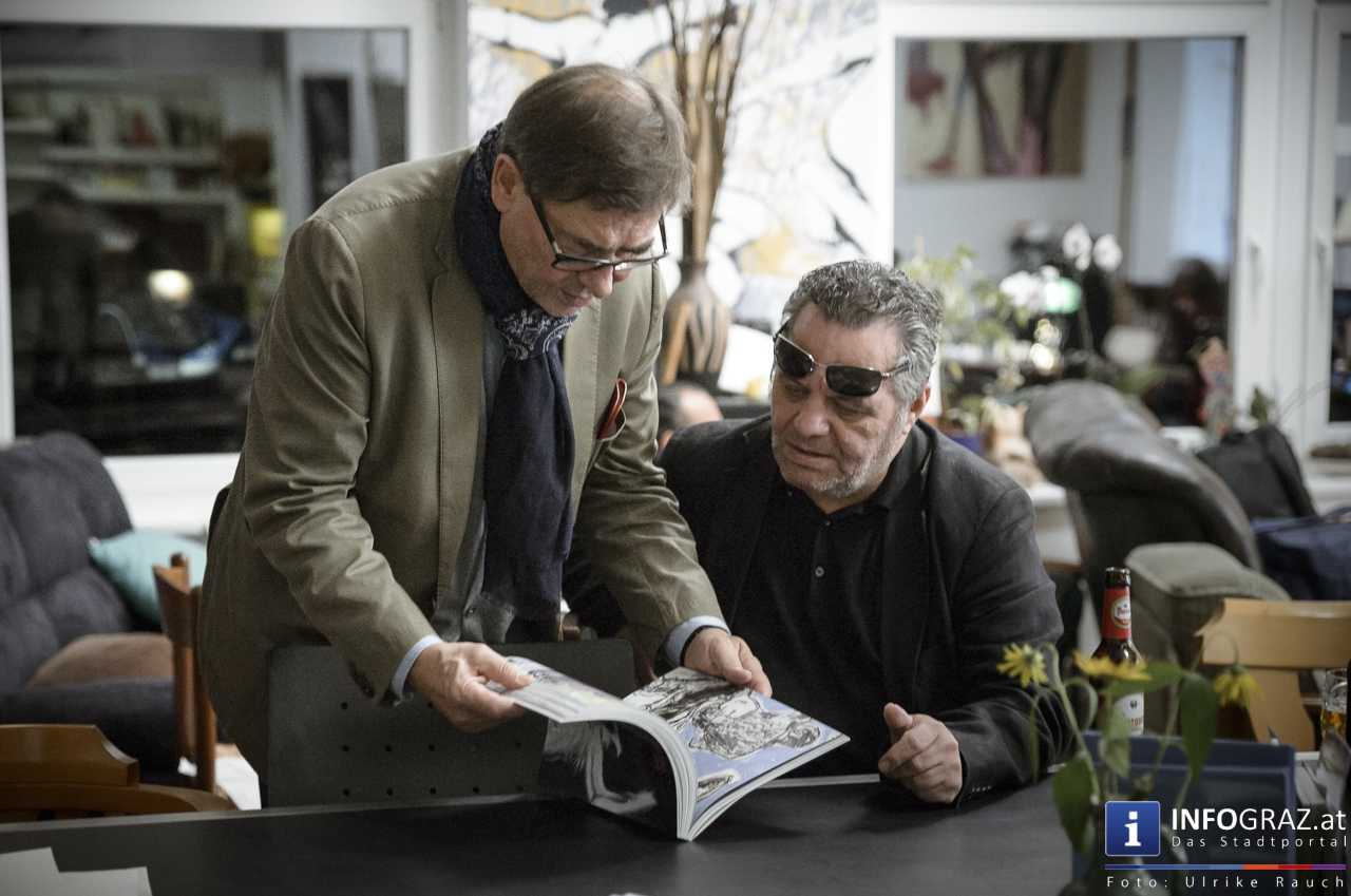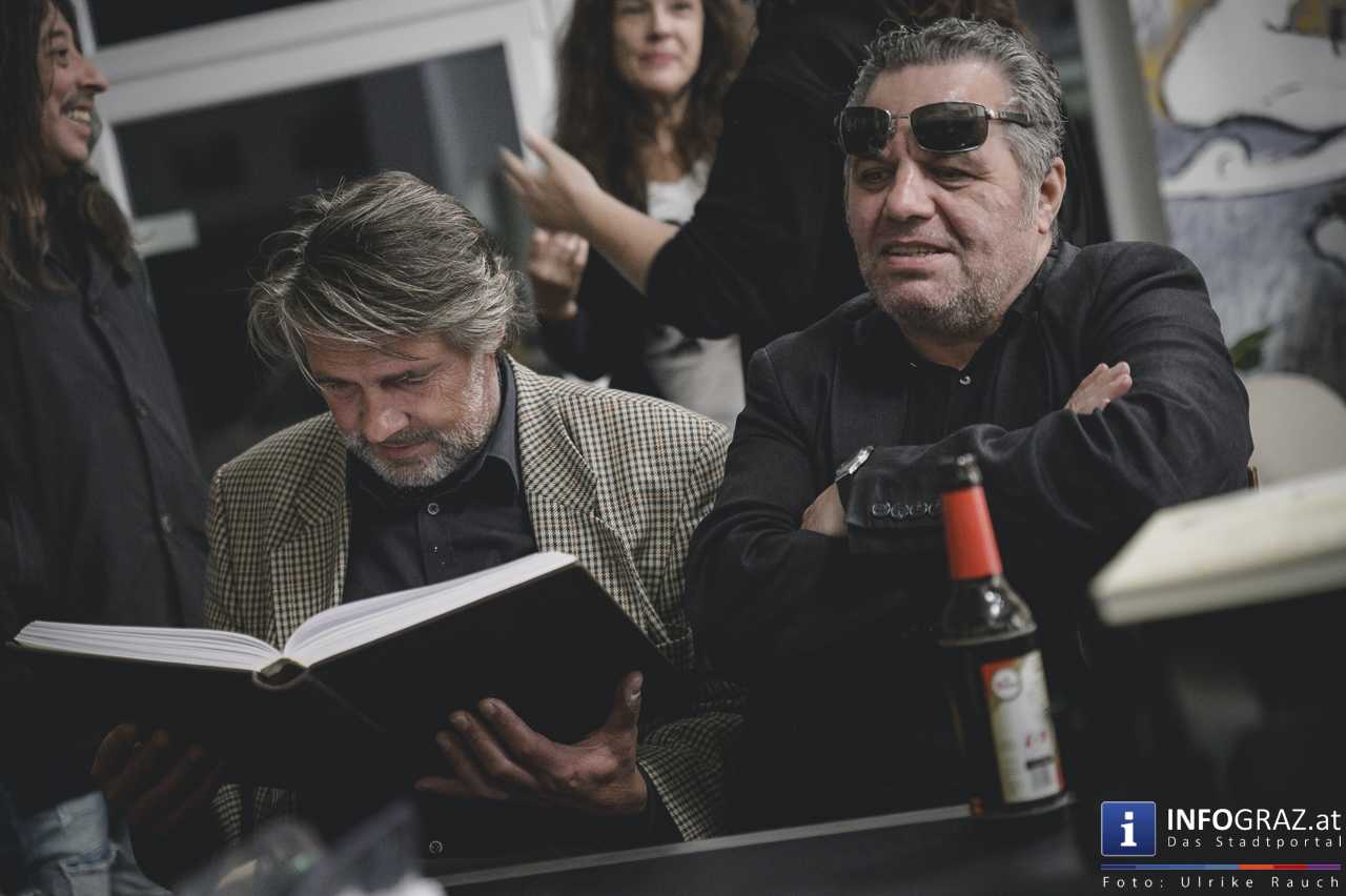 Nach einem vollen Haus bei der Buchpräsentation von „a guada tog oder a zprackta braucht kaan karakta“ in Wien waren am Mittwoch auch die Verlagsräumlichkeiten der edition keiper in der Grazer Puchstraße bis zum letzten Platz gefüllt, als Harri Stojka sein erstes Buch, Gustostückchen der Wiener MundArt mit Zeichnungen von Walter Schmögner, präsentierte.