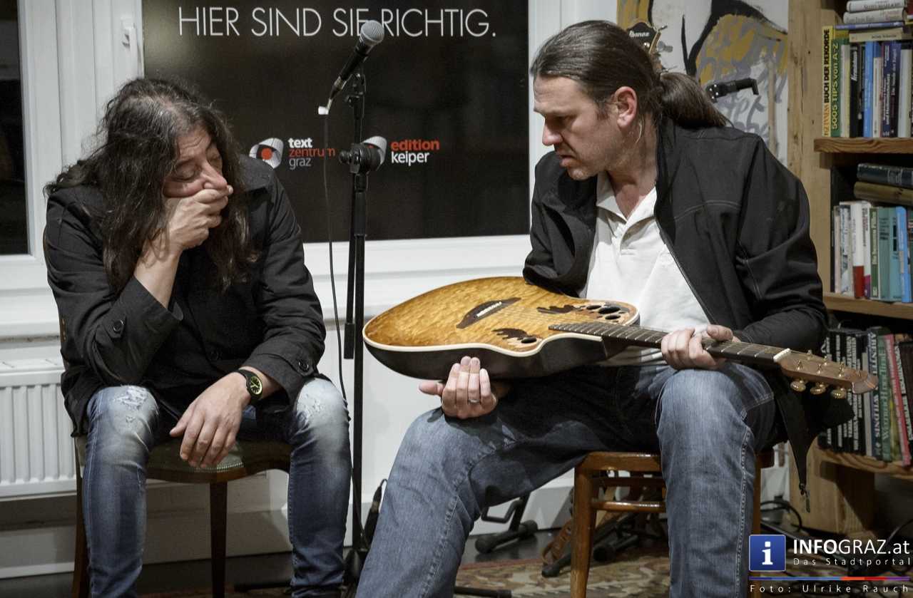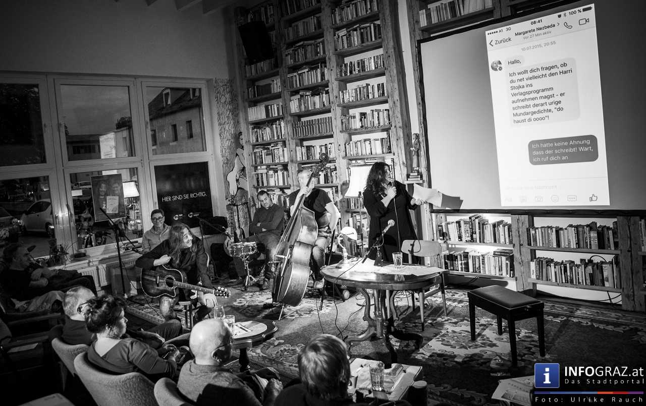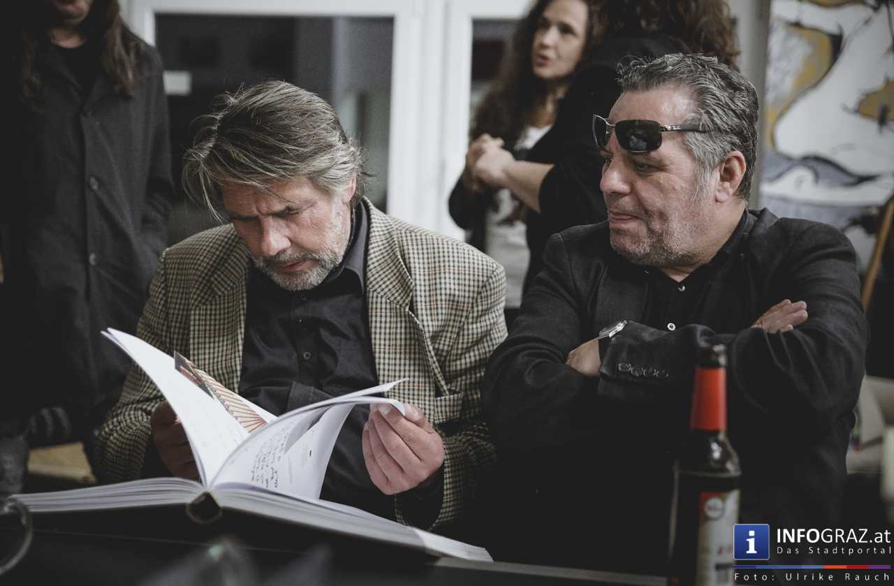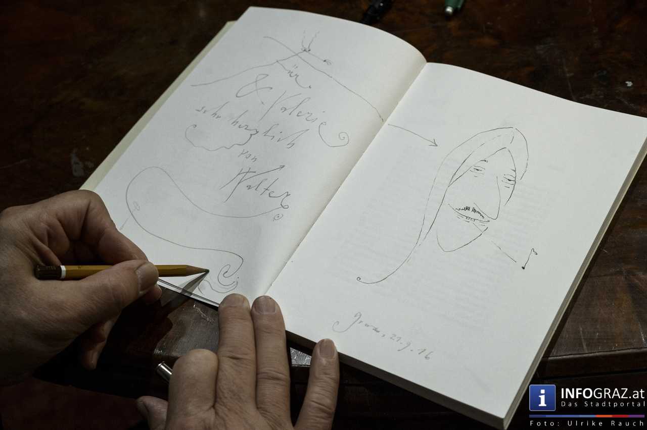 Nach einem vollen Haus bei der Buchpräsentation von „a guada tog oder a zprackta braucht kaan karakta“ in Wien waren am Mittwoch auch die Verlagsräumlichkeiten der edition keiper in der Grazer Puchstraße bis zum letzten Platz gefüllt, als Harri Stojka sein erstes Buch, Gustostückchen der Wiener MundArt mit Zeichnungen von Walter Schmögner, präsentierte.