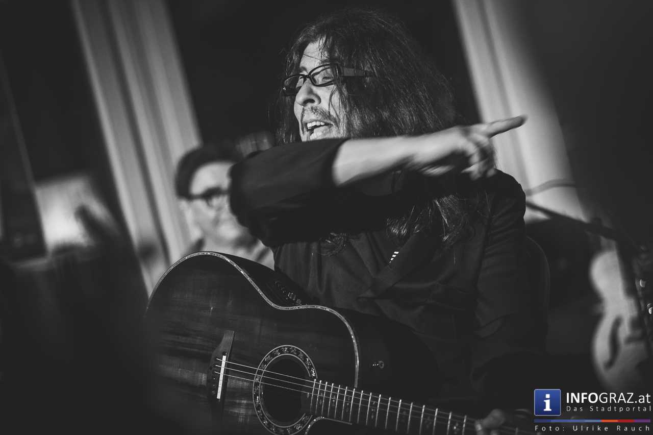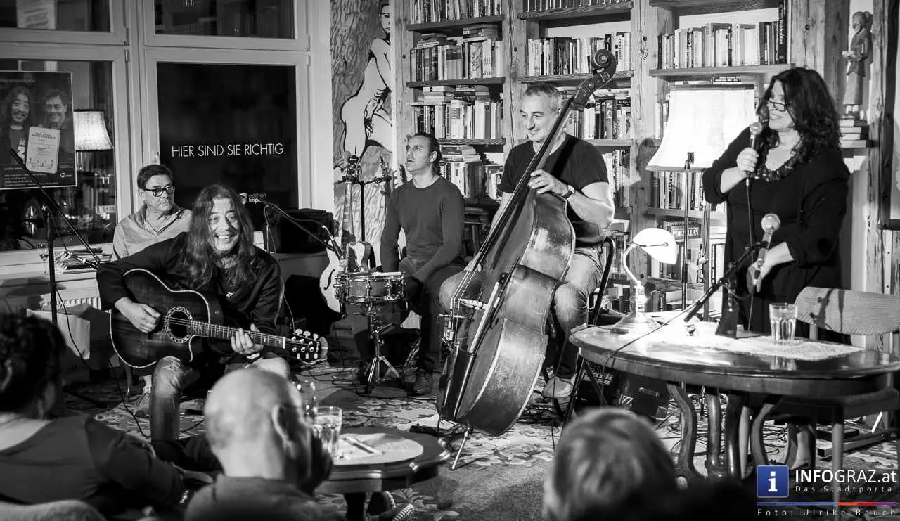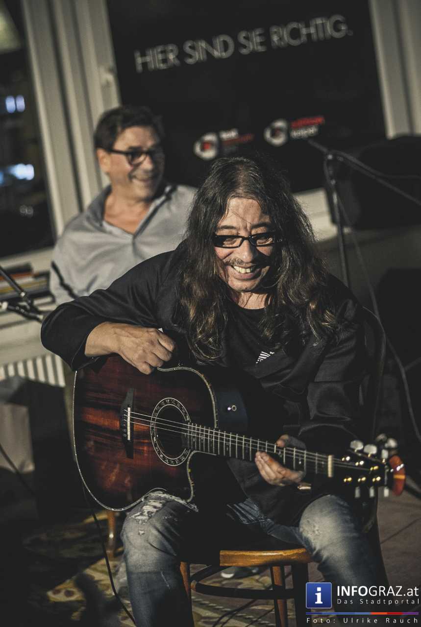 Und wenn Gitarrenvirtuose Harri Stojka auf der Bühne steht, darf natürlich auch die Musik nicht fehlen. Gemeinsam mit seinen Kollegen Peter Strutzenberger (Bass) und Goran Krstic (Percussion) bot er einige Nummern aus seinem unvergleichlichen Repertoire. Ein Abend mit viel Humor, Rhythmus und Jazz vom Feinsten.