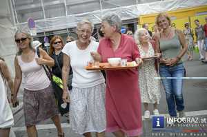 Von Livemusik über Kinder-Animation bis hin zu bodenständigen Snacks ist alles da. Sogar die Grazer Verkehrs Betriebe GVB beteiligen sich an der Sommerparty: mit einer eigenen Straßenbahnhaltestelle der Linie 5.
