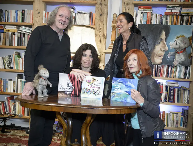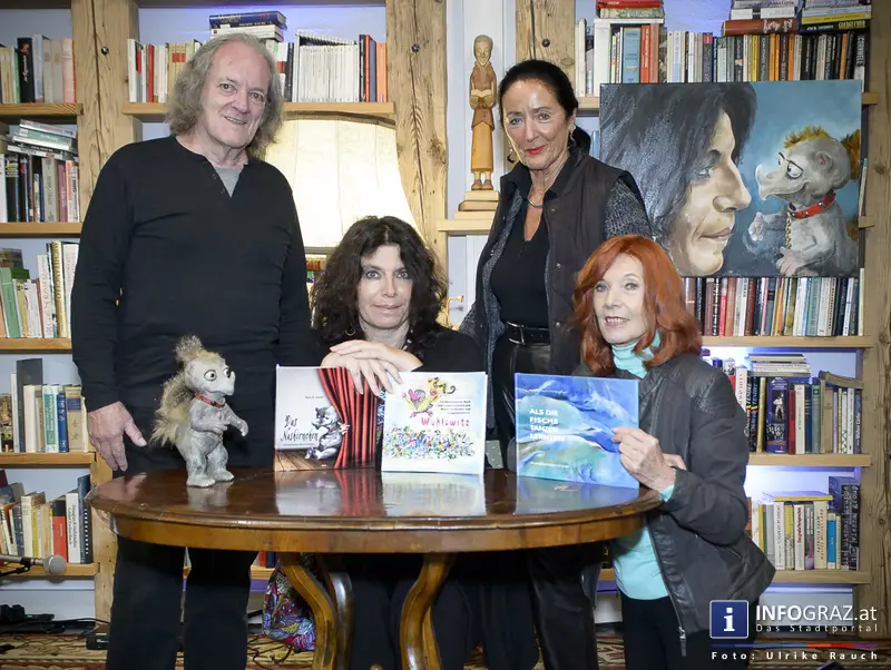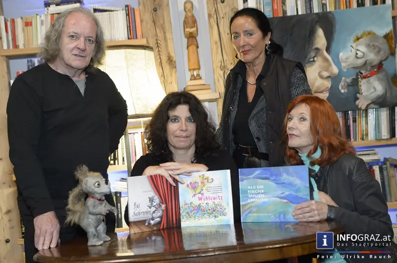 Hans Karl Stöckl,Verlegerin Anita Keiper,Monika Schönbacher-Frischenschlager,Hanna Lux,reihe keiper-kinderbuch,präsentation,kinderbücher,edition keiper graz