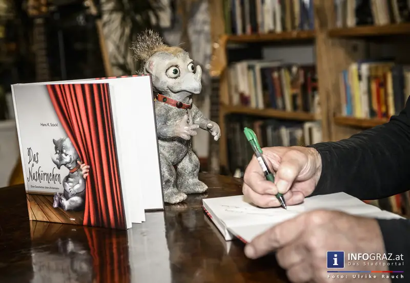 Hans Karl StöcklAutor, Illustrator und Allroundgenie aus Niederösterreich, gab schauspielreif Auszüge aus dem satirischen Kinderbuch "Das Nashörnchen", für Erwachsene und Kinder ab ca. zehn Jahren, zum Besten – ein Buch übers Anderssein. Kein Geringerer als Ernst Hinterberger ("Kaisermühlen Blues", "Mundl", "Trautmann") lieferte übrigens das Nachwort im "Nashörnchen.