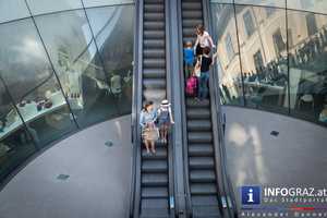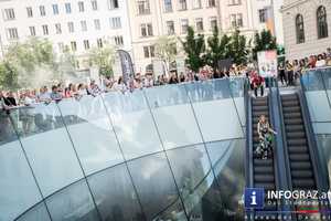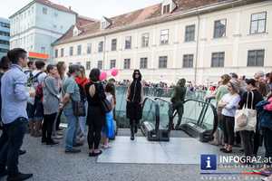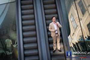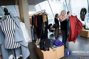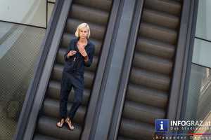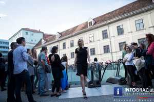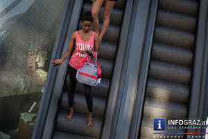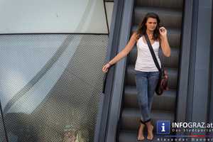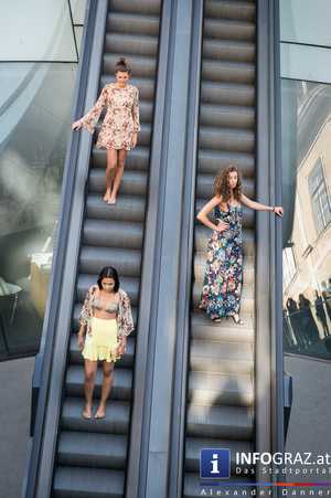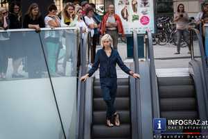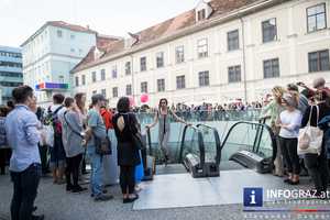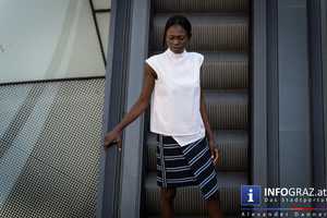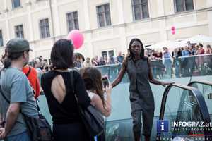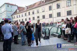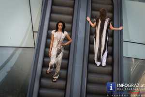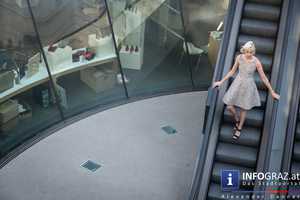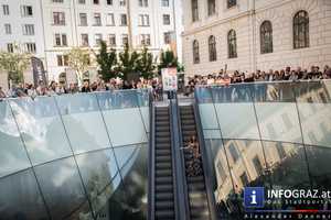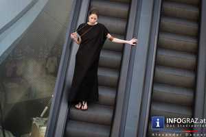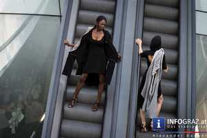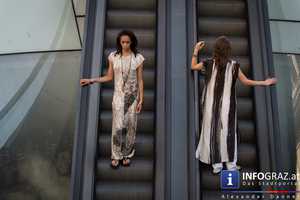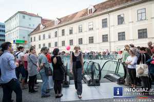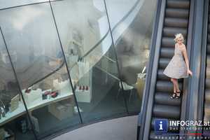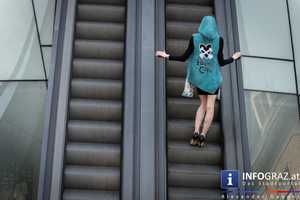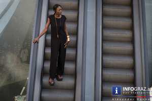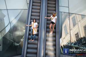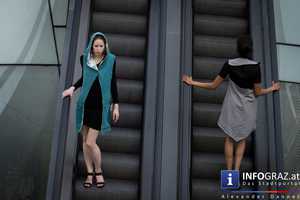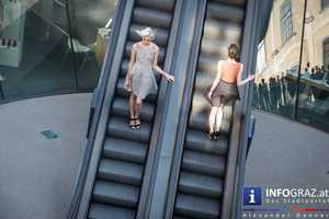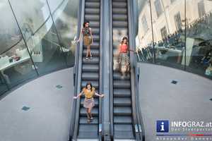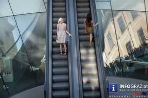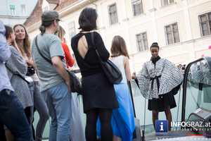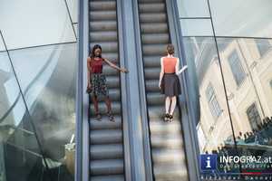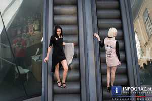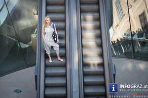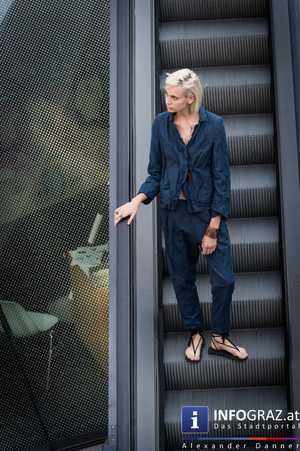 Zahlreiche Mode-Interessierte und Schaulustige versammelten sich um die Rolltreppe im Grazer Joanneumsviertel, das diese Tage zur Design-Zone und (Verkaufs-)Ausstellung des assembly Festivals verwandelt wurde.